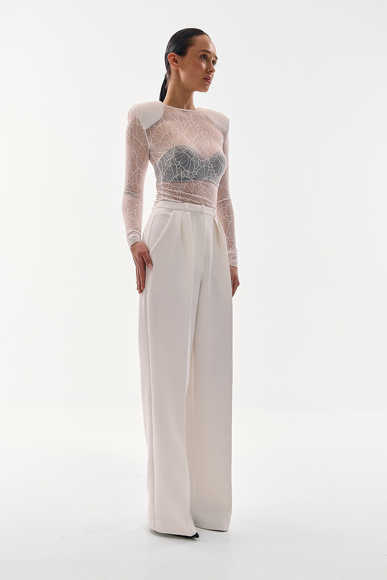 Класична модель широких палаццо, яку ми видозмінили та додали вузький пояс, що робить силует більш акуратним та елегантним. Такий прийом красиво коригує фігуру, візуально зменшуючи об’єм у талії то роблячи її акуратнішою. Модель виглядає свіжо й актуально, зберігаючи при цьому універсальність. Виконані з щільної костюмної тканини, ці штани ідеально підходять для створення базових стильних образів.