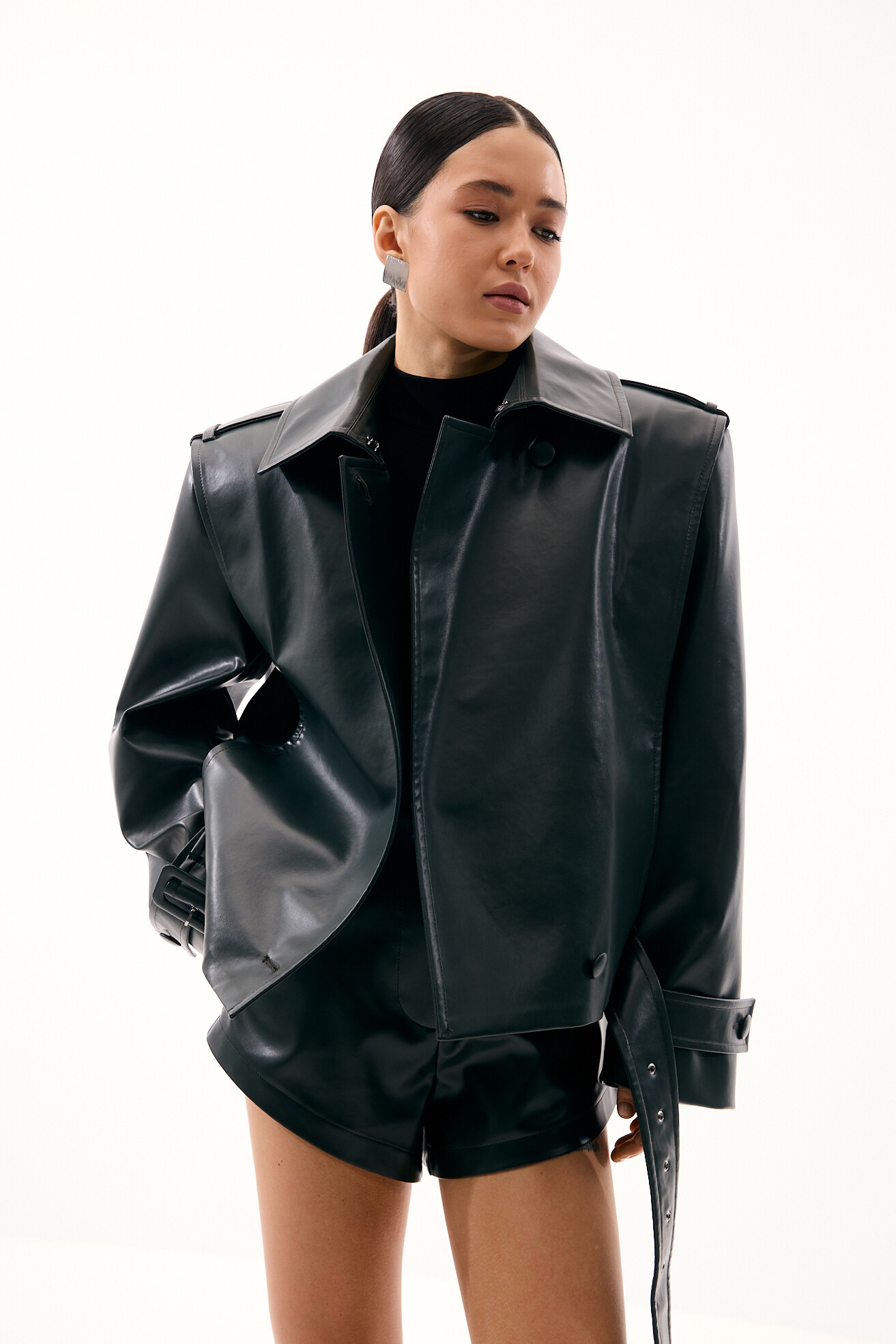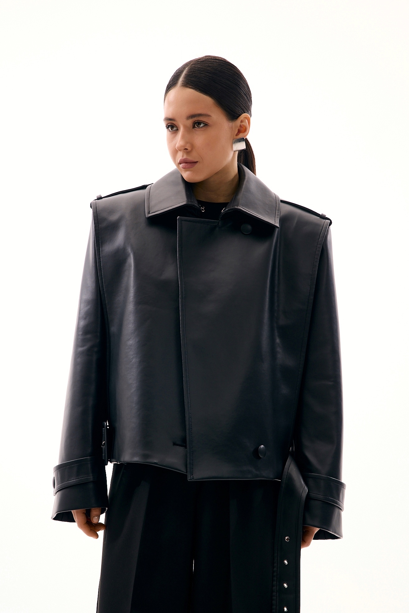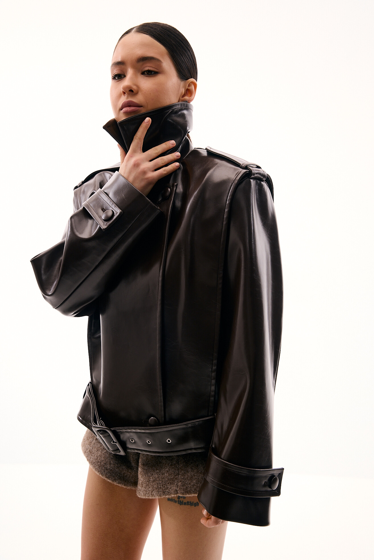 Родзинкою нашої весняної  колекції стала оверсайз-косуха зі структурованим, чітким силуетом. Додаткова продубльована  екошкіра додає моделі стійкості та допомагає їй добре тримати форму. Косуха виглядає ефектно й сучасно, служитиме акцентом в образі. Легка утеплена підкладка на синтепоні 100 дозволяє комфортно носити її в перехідний сезон.