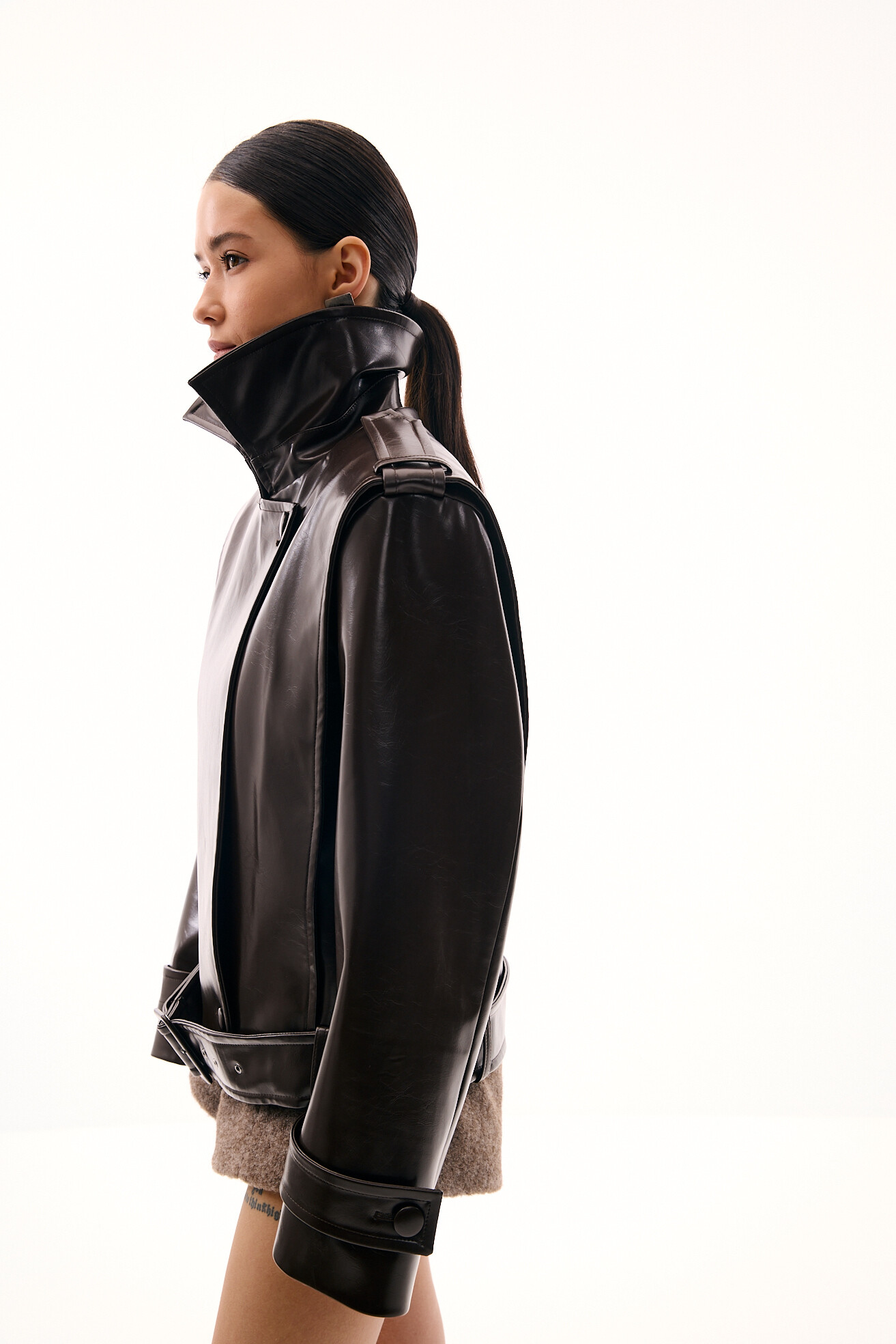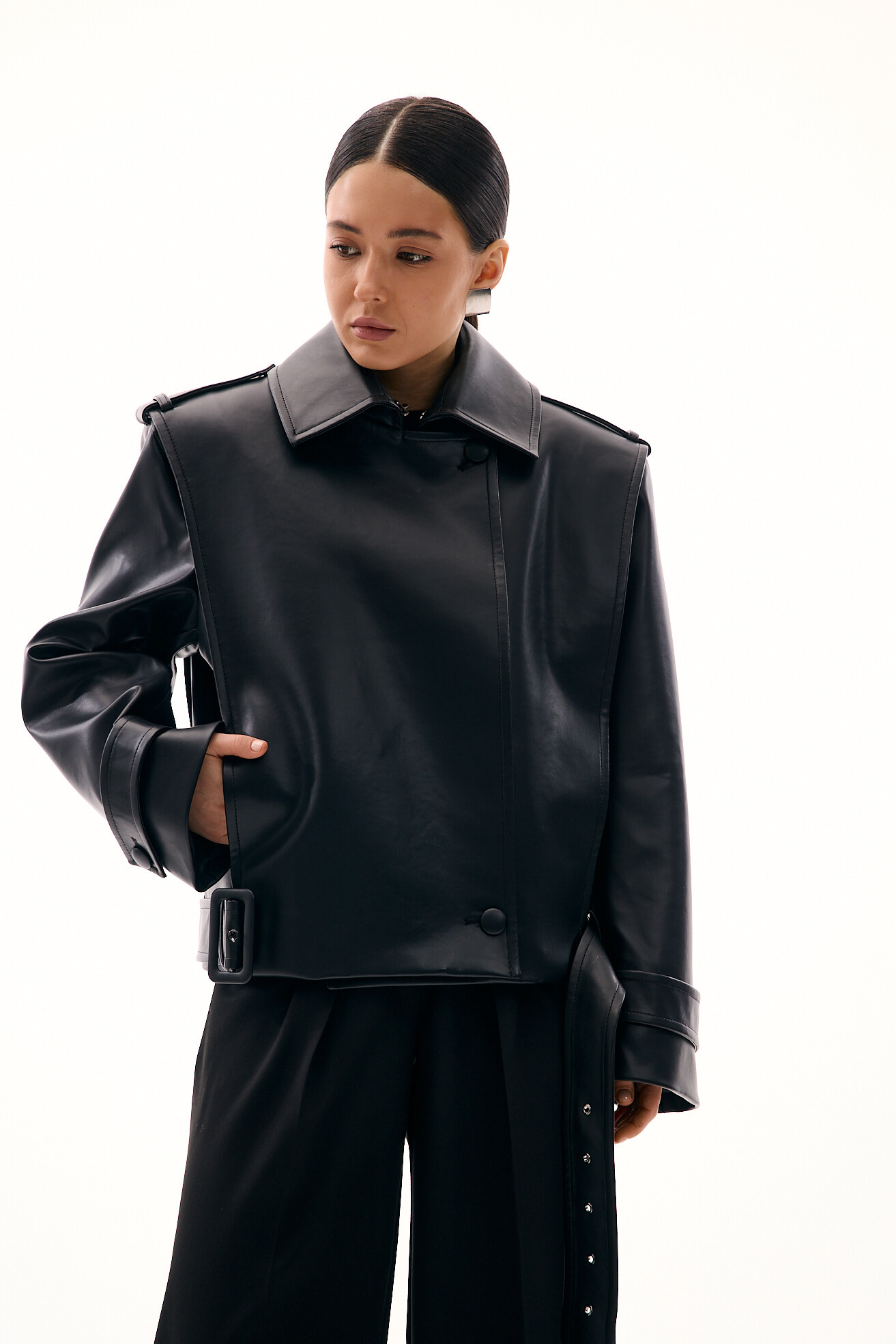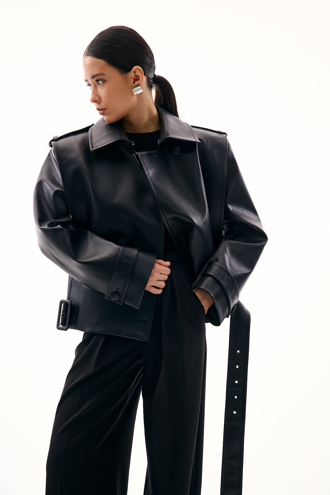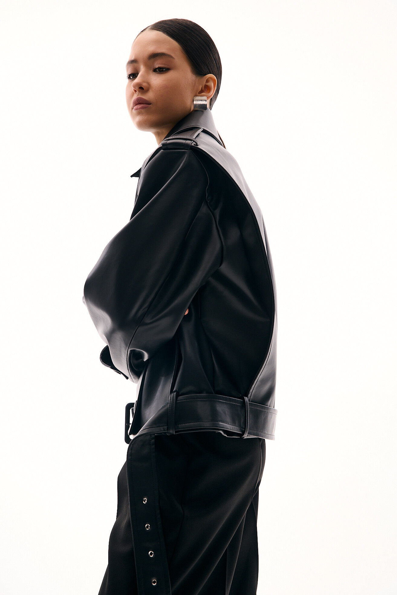 Родзинкою нашої весняної  колекції стала оверсайз-косуха зі структурованим, чітким силуетом. Додаткова продубльована  екошкіра додає моделі стійкості та допомагає їй добре тримати форму. Косуха виглядає ефектно й сучасно, служитиме акцентом в образі. Легка утеплена підкладка на синтепоні 100 дозволяє комфортно носити її в перехідний сезон.