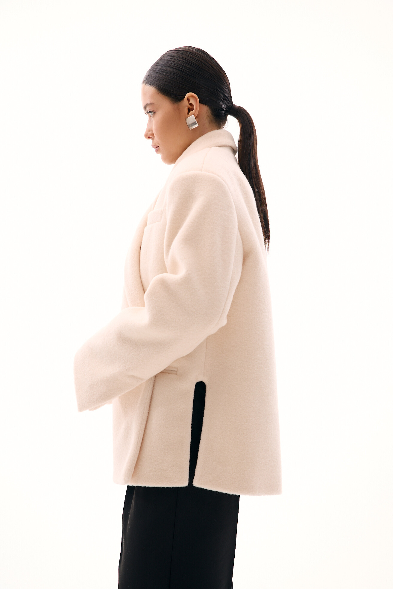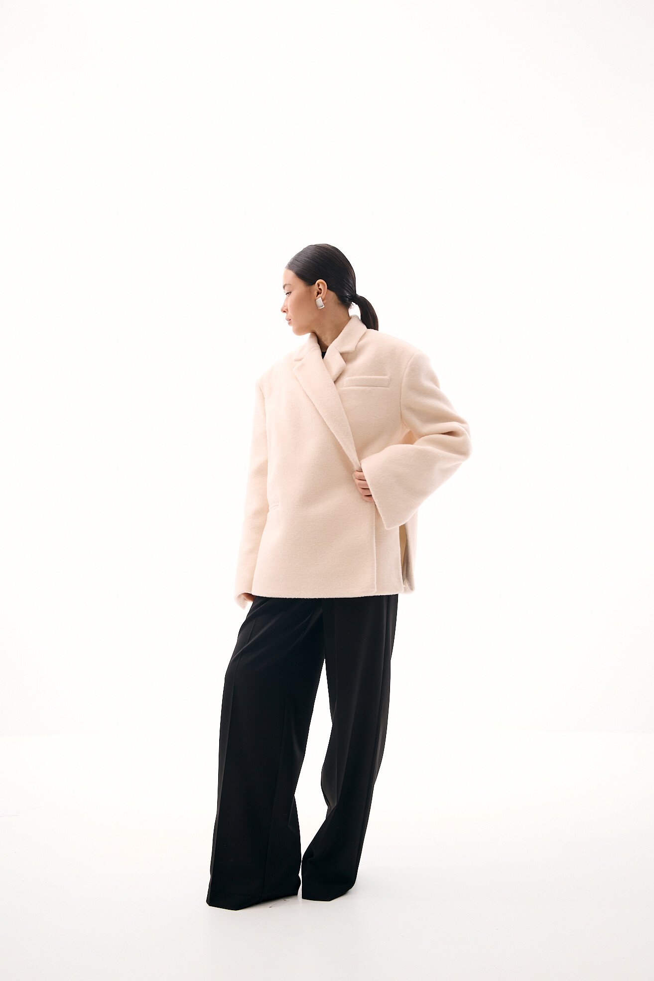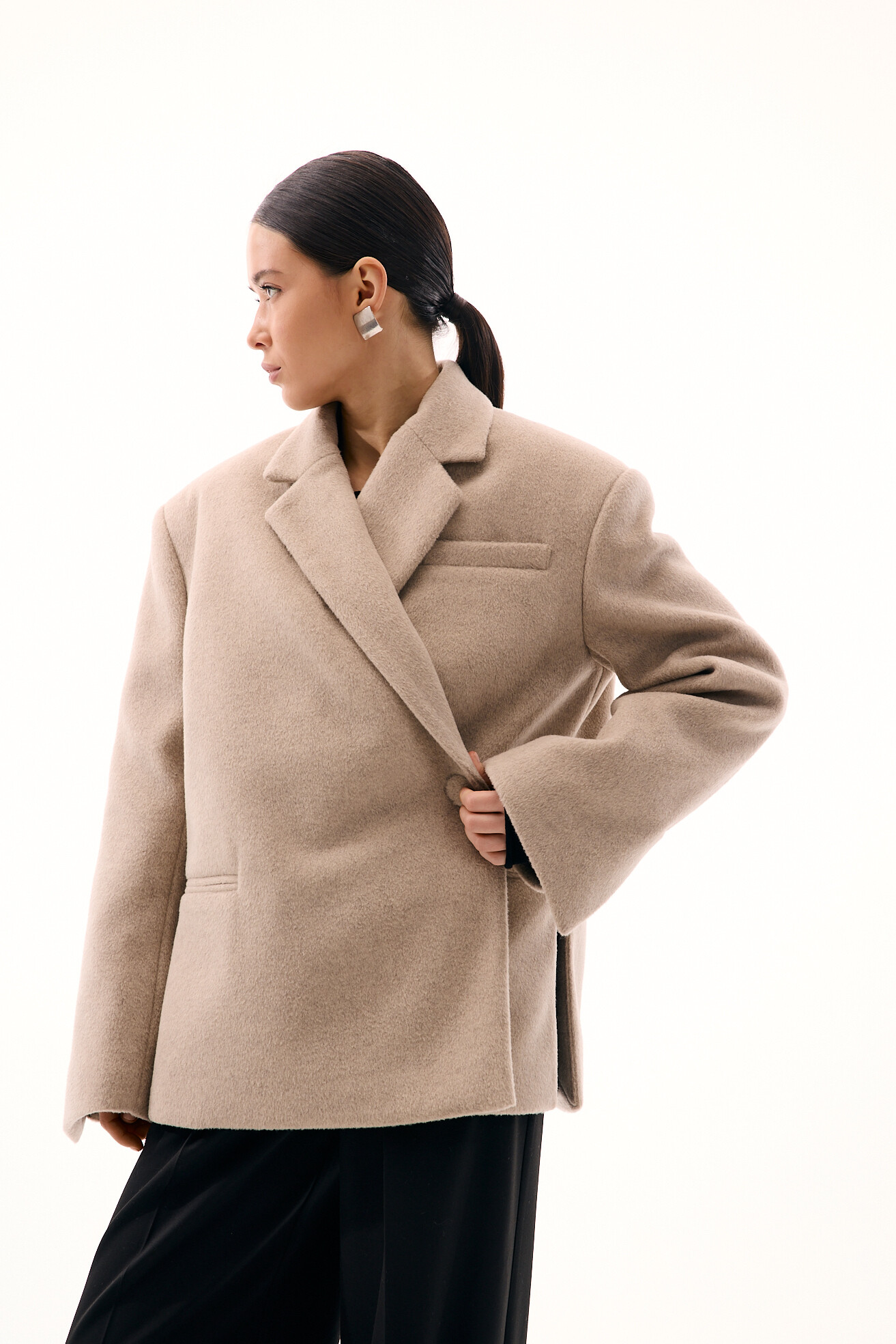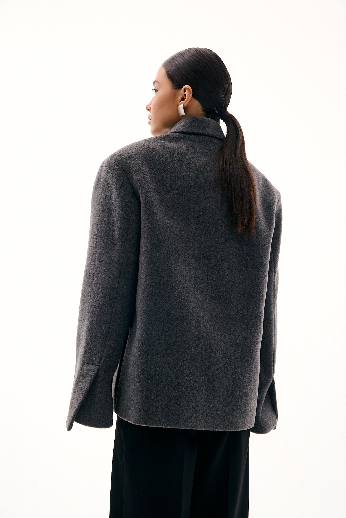 Зручний варіант верхнього одягу на весну - вкорочене пальто, яке ми пропонуємо у новому актуальному  оверсайз фасоні.  З цікавих акцентів - фігурні вирізи  збоків, що робить модель більш складною. Актуальний графітовий колір  виглядатиме в цьому сезоні дуже цікаво та стильно.  Матеріал ми обрали  з вмістом віскози та поліестеру, що робить його приємним до тіла та гарантує довгу зносостійкість, адже тканина не буде кошлатитися.