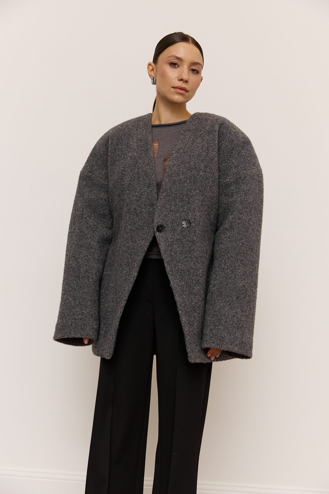 Пальтова тканина: 30% віскоза, 70% поліестер Підкладка: 80% поліестер, 20% віскоза