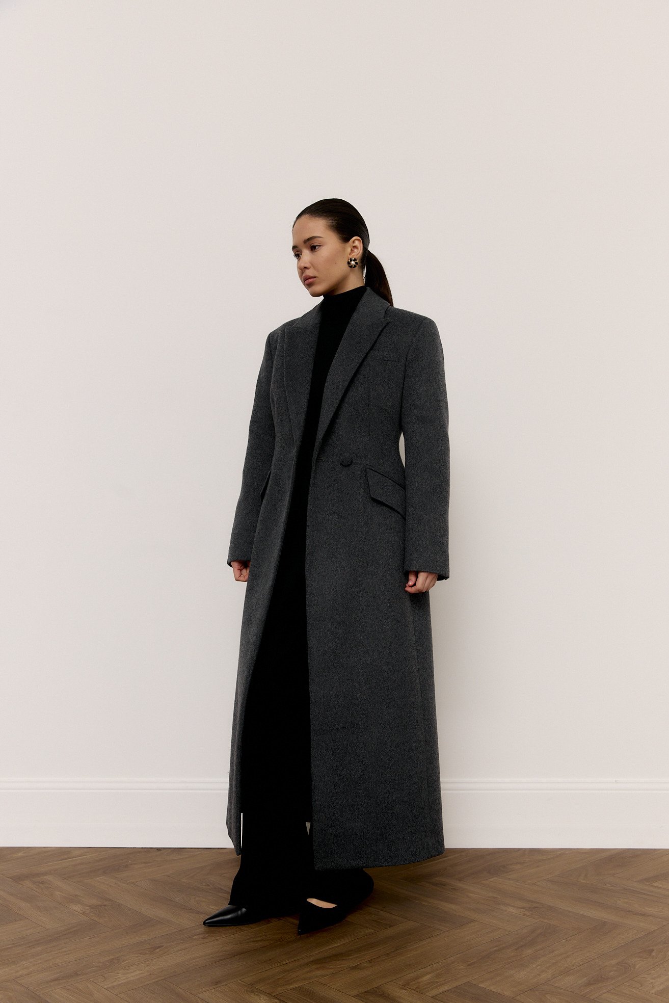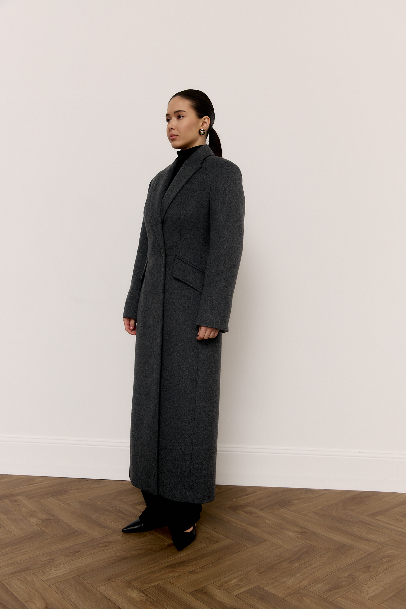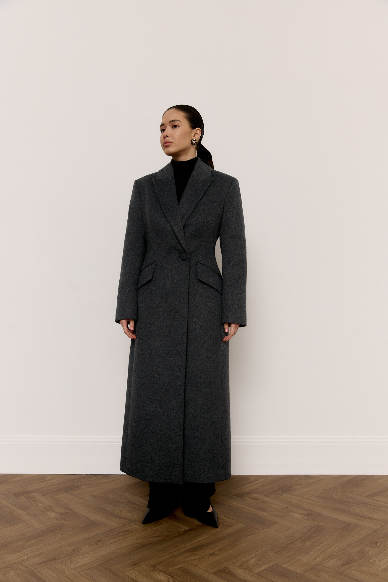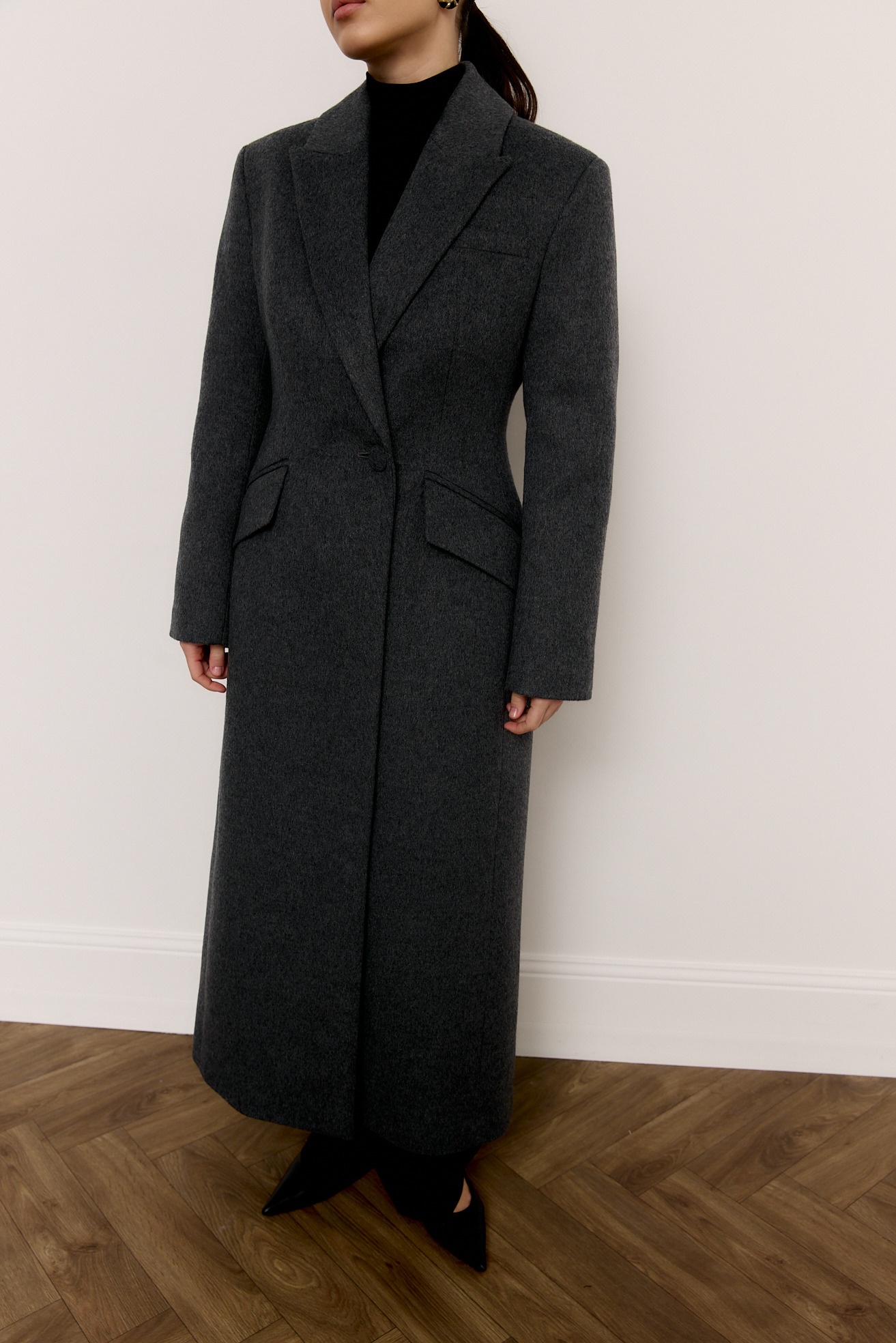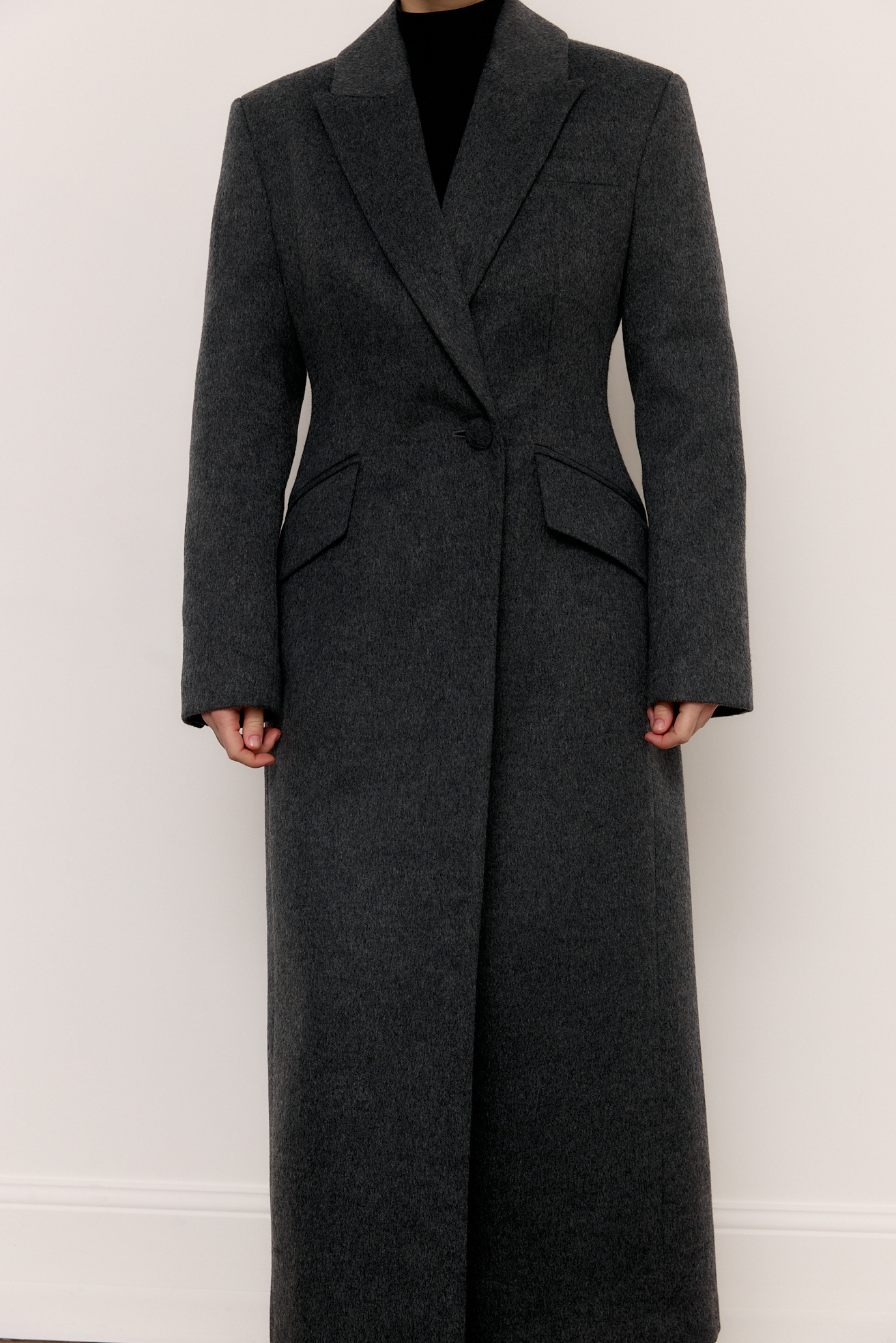 Приталене вовняне пальто