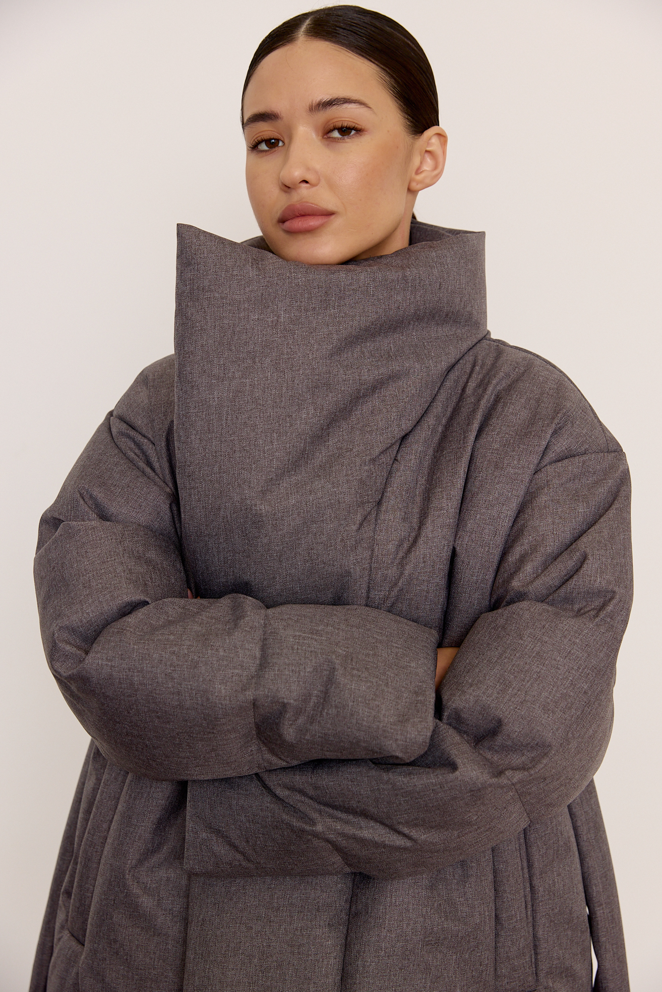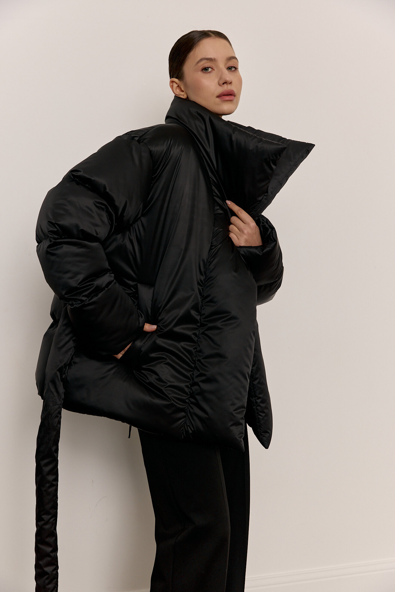 Теплий зимовий пуховик з наповненням екопух — поєднання стилю, функціональності та жіночності. Його елегантний фасон виглядає цікаво й небанально, гармонійно доповнюючи як спортивні, так і класичні образи. Плащова тканина щільна й має виразну фактуру, що додає моделі глибини та вишуканості. Прихована фурнітура на магнітних кнопках підтримує лаконічність дизайну, а високий комір-хомут надійно захищає від холоду й вітру.