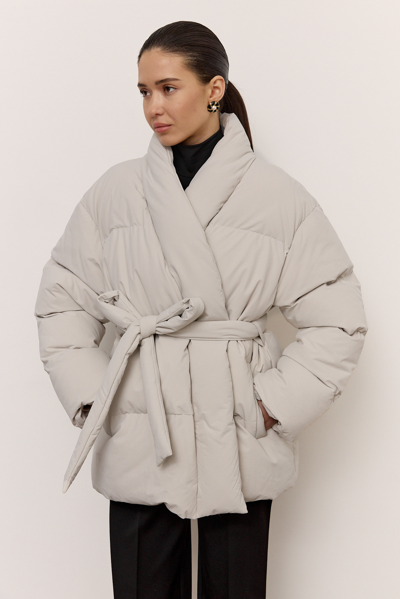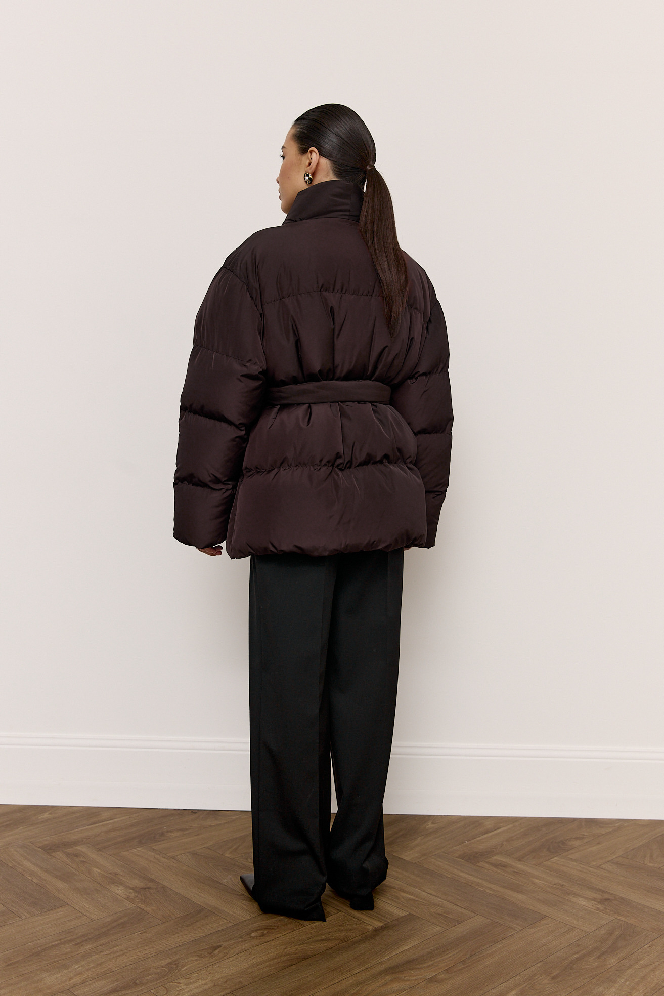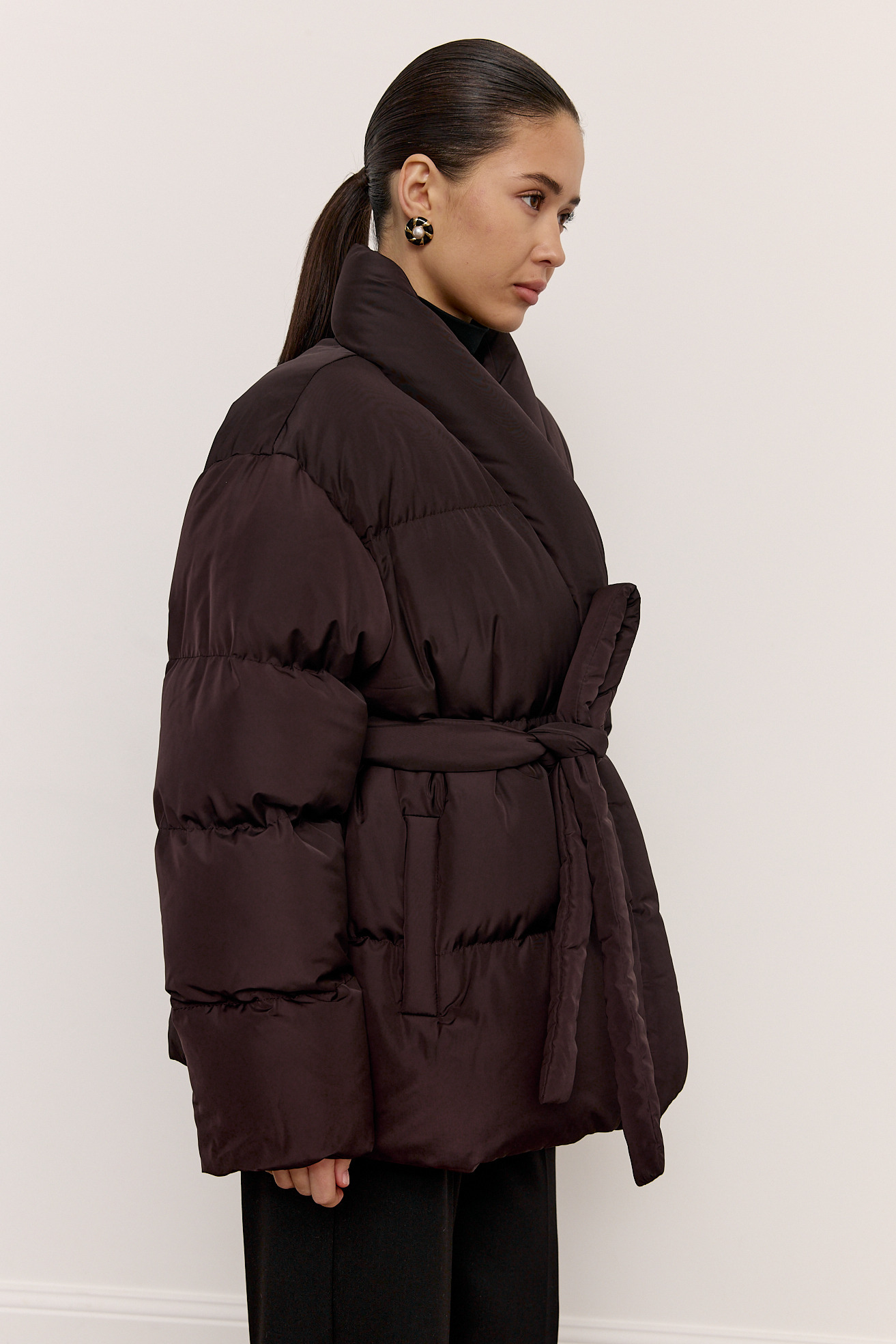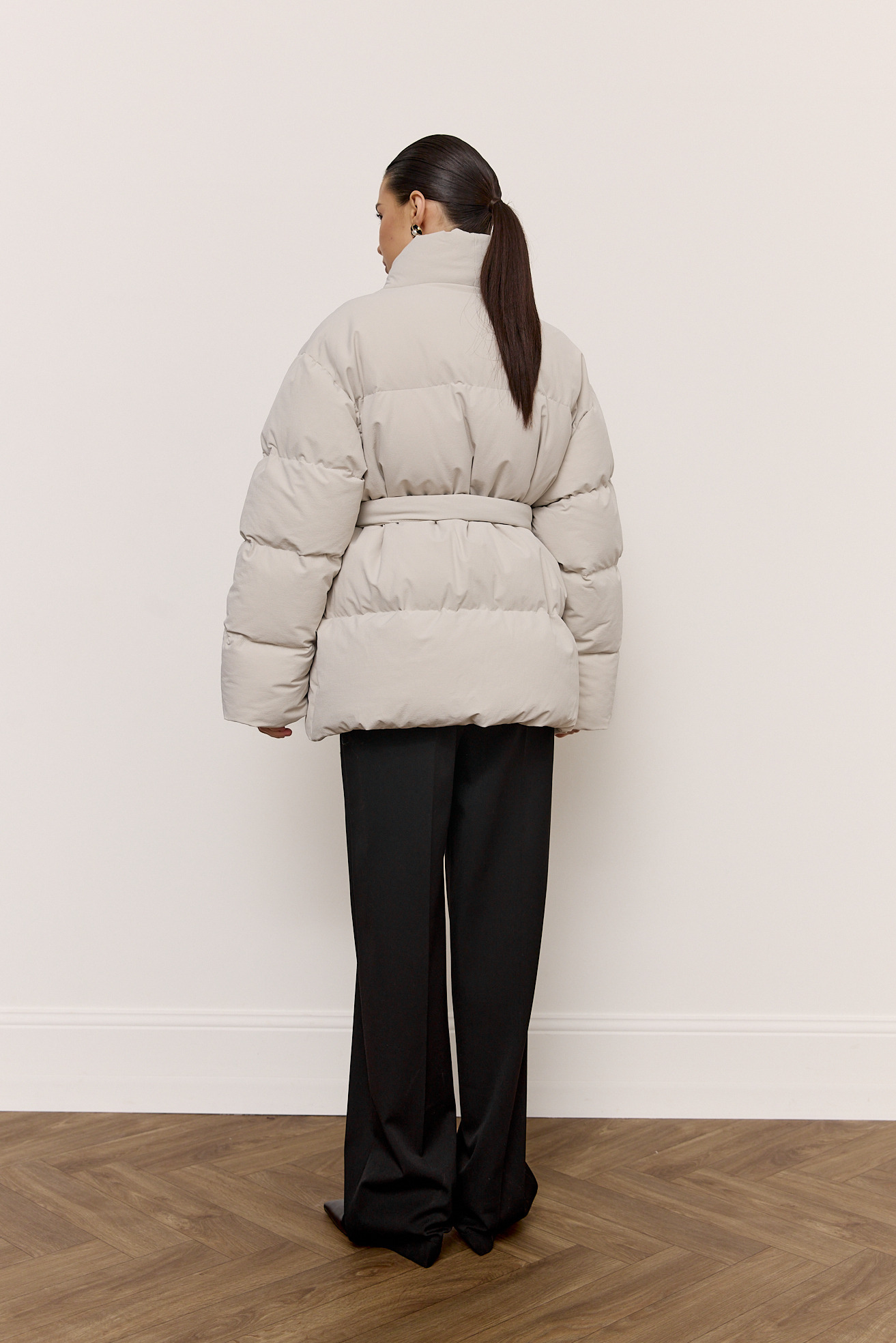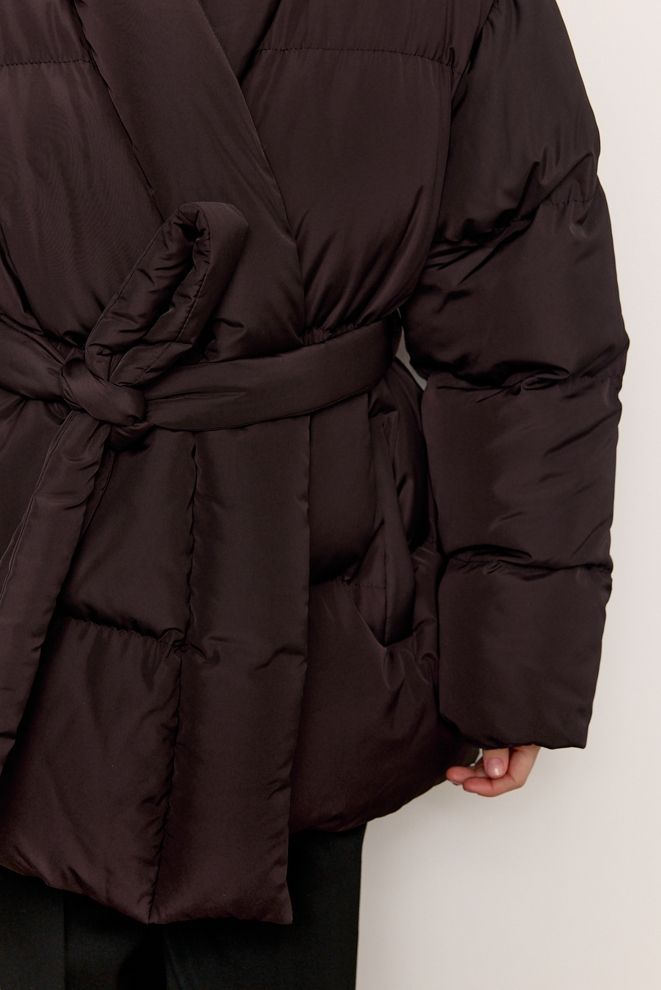 Пуховик подовжений з поясом