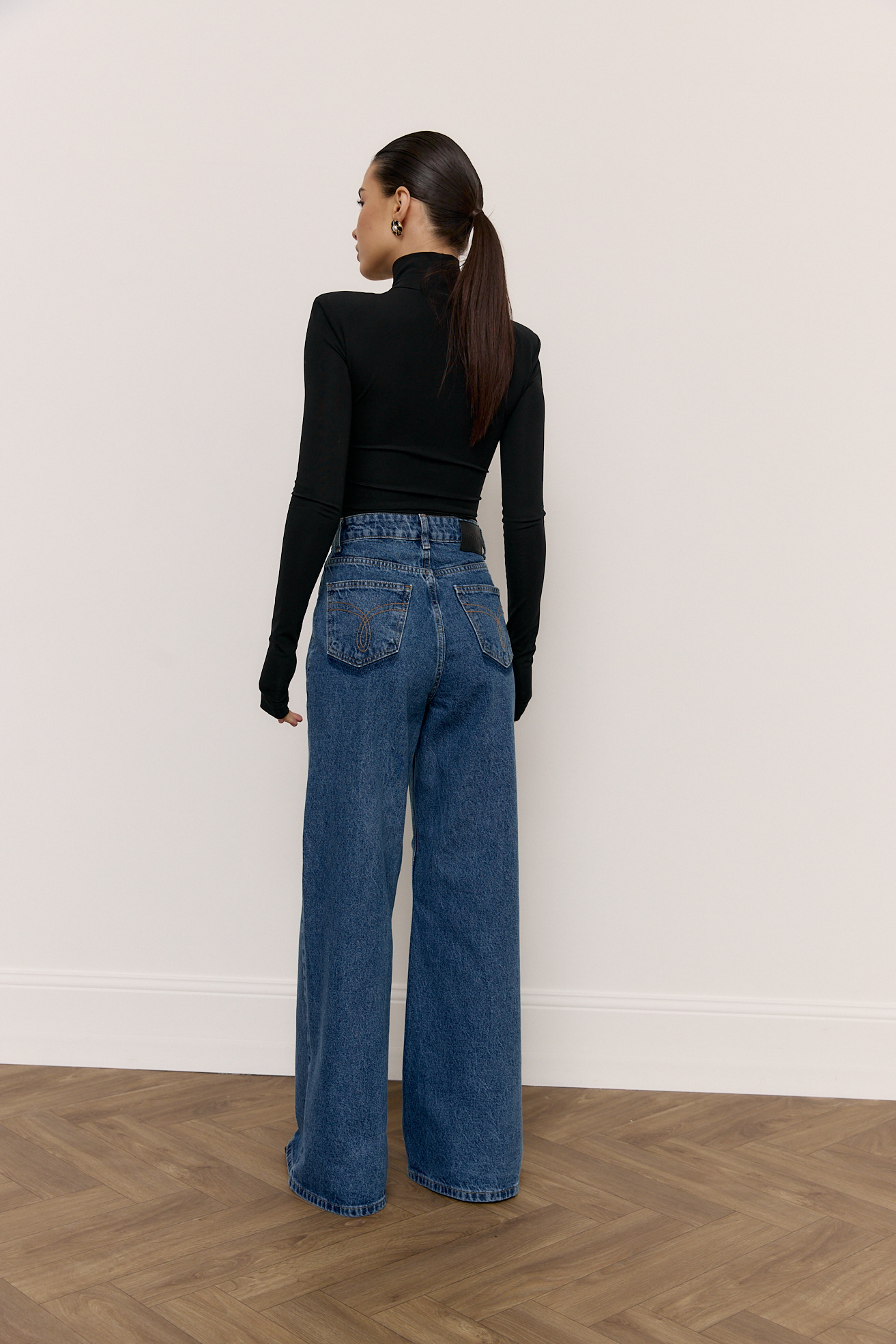Джинси з акцентними кишенями довші