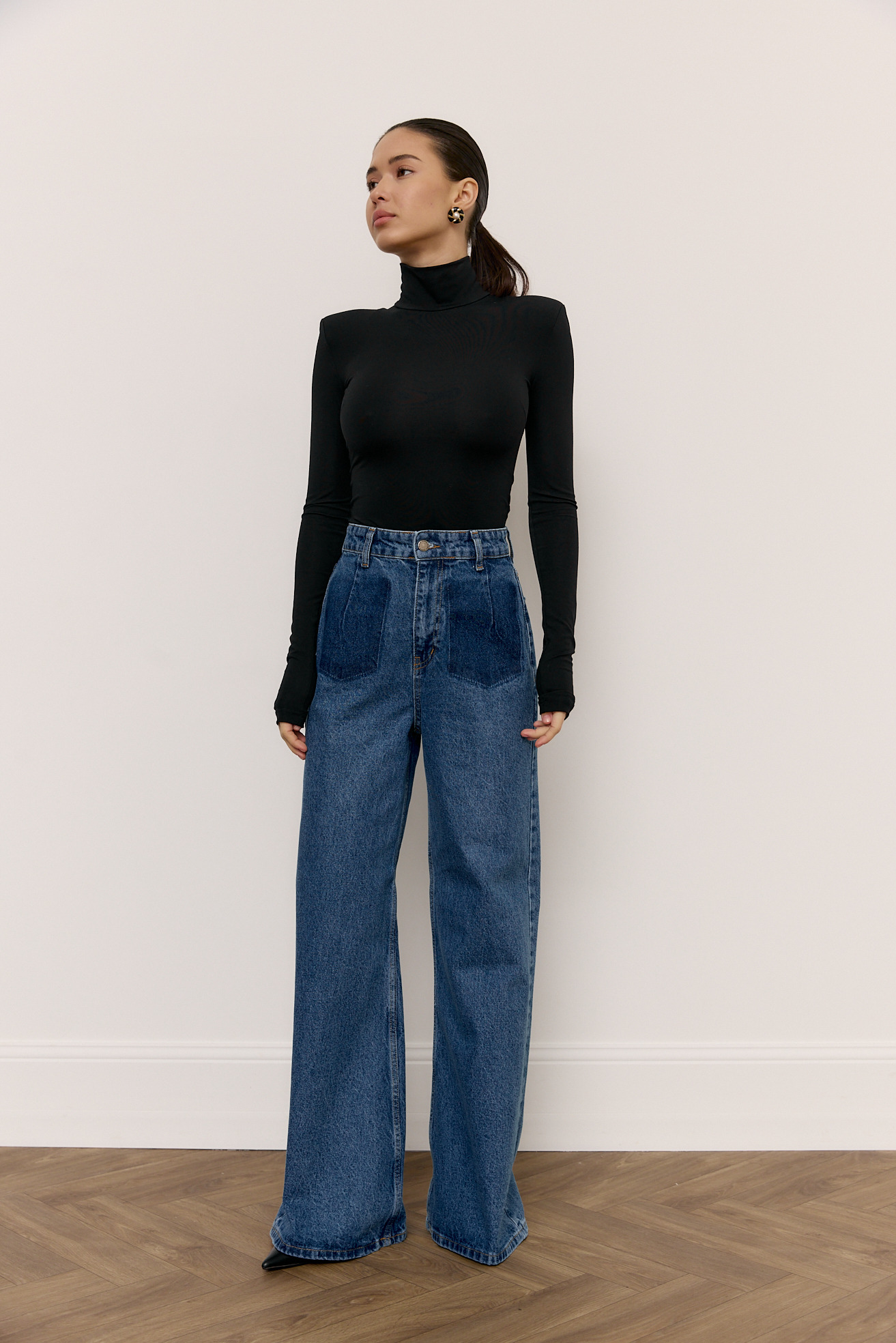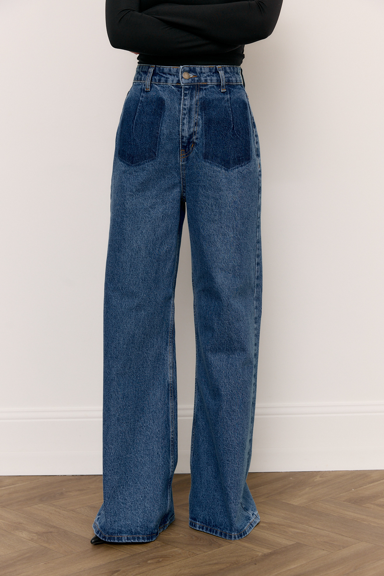 Джинси вільного фасону з легким ефектом кльошу донизу виглядають сучасно та невимушено. Гарний синій відтінок легко поєднується з базовими й акцентними речами, а імітація кишень спереду виступає стильним дизайнерським акцентом. Завдяки вільному крою модель комфортна у носінні та підходить для будь-якого сезону. Джинси доступні у двох довжинах, тож легко обрати ідеальний варіант відповідно до свого зросту.