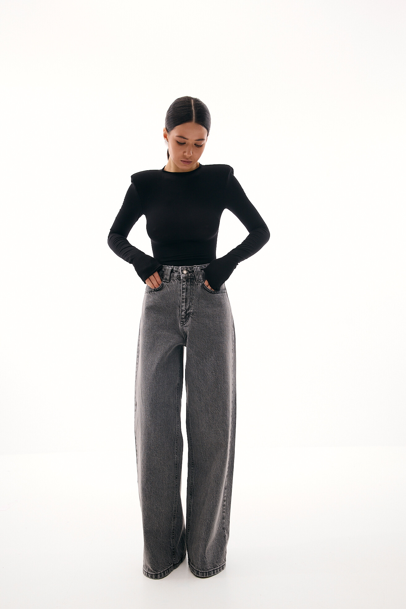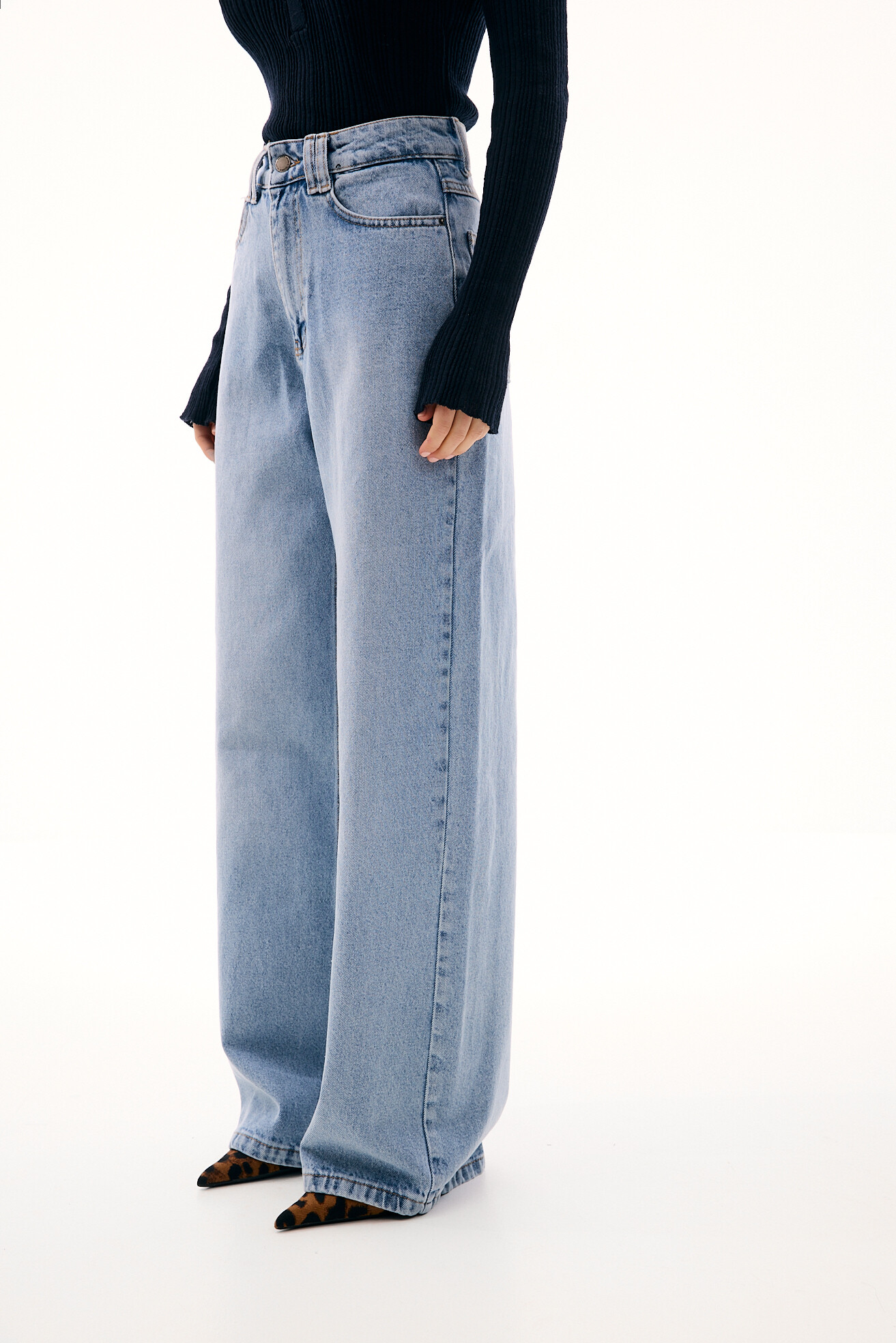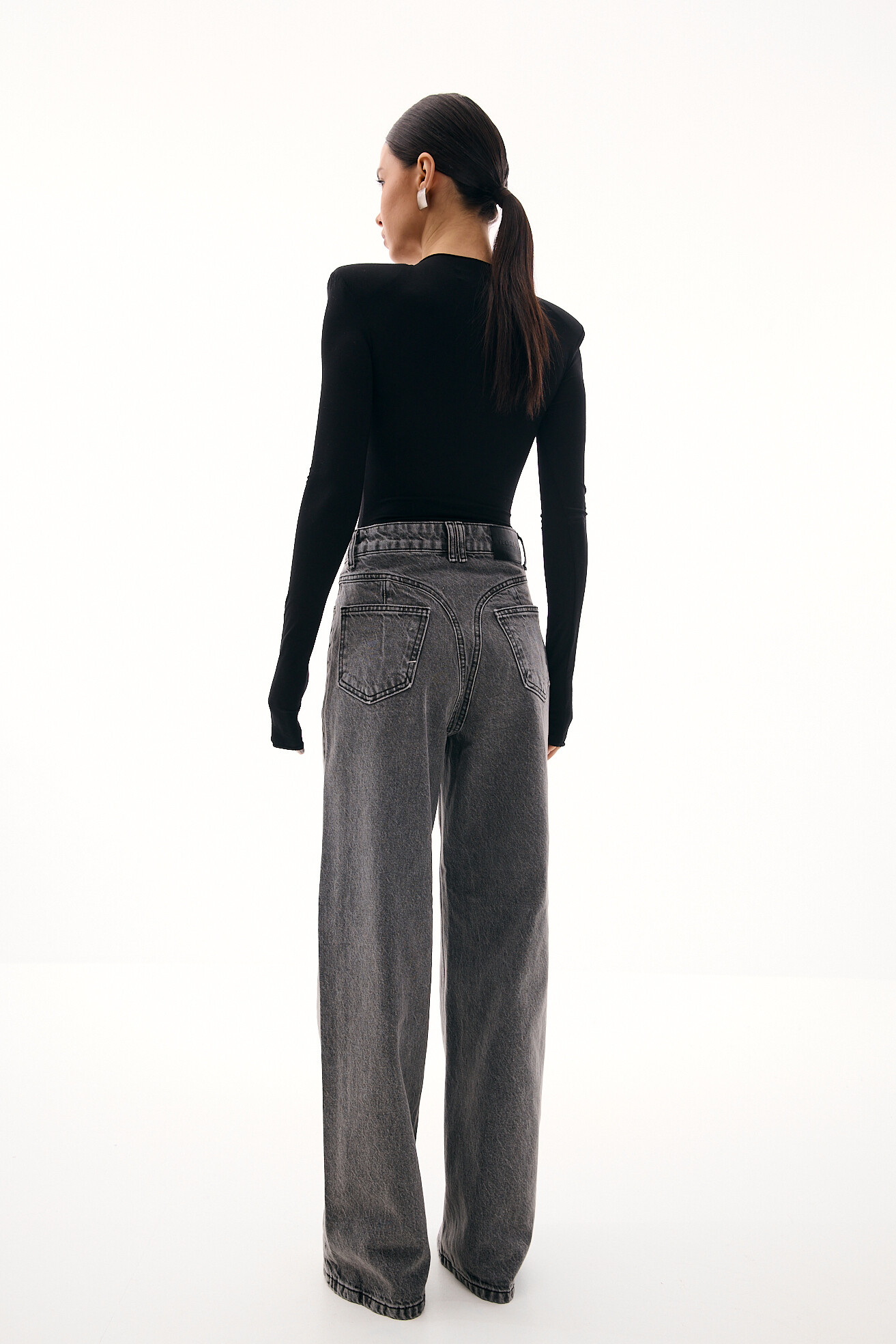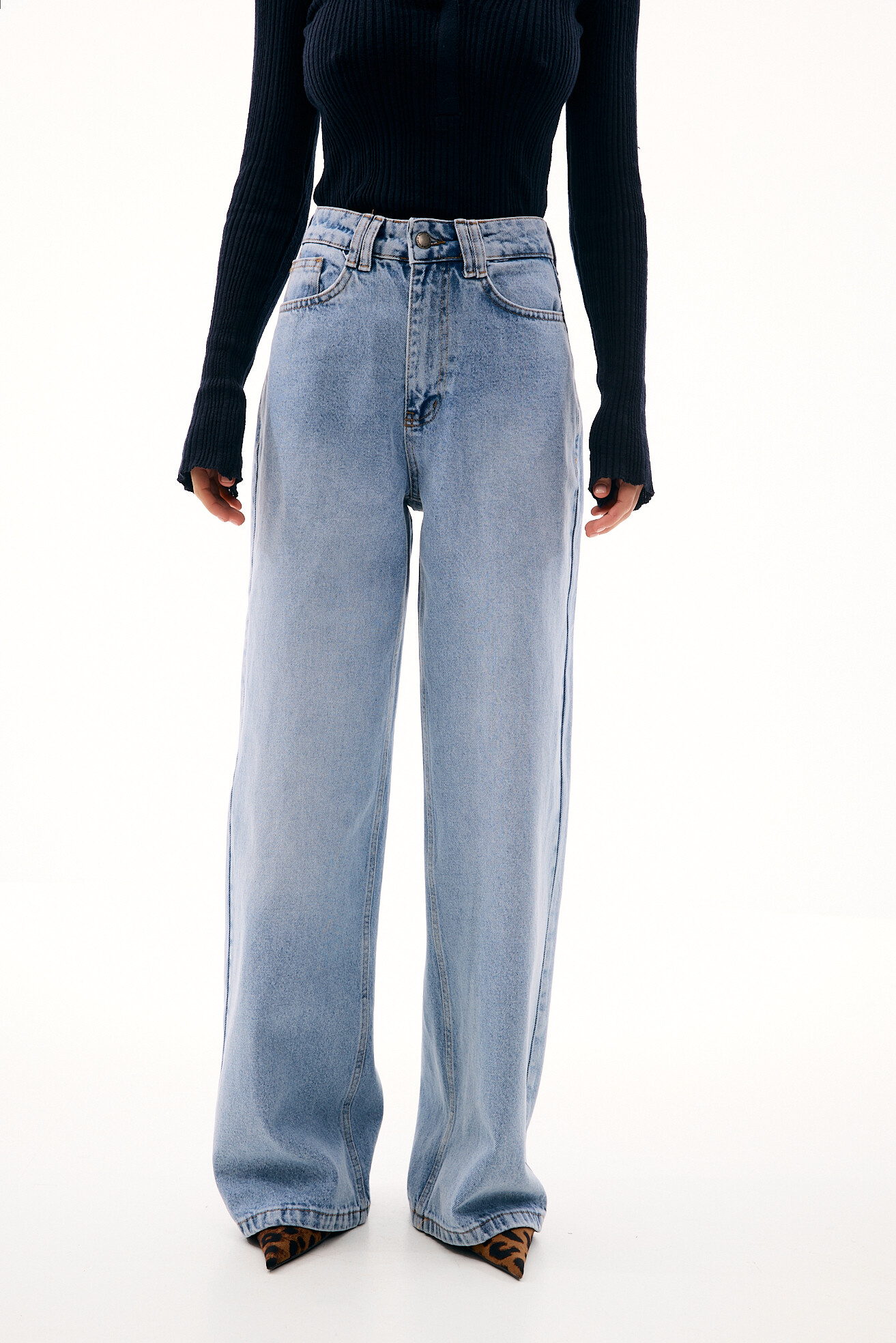 Джинси вільного, розслабленого фасону — комфортна база з виразним характером. Цікавий акцент у вигляді фігурної кокетки підкреслює талію та лінію стегон, роблячи силует більш виразним. Щільний денім добре тримає форму й забезпечує тривалість у носінні. Модель залишається універсальною та зручною, водночас додаючи образу акцентності та сучасної яскравості.