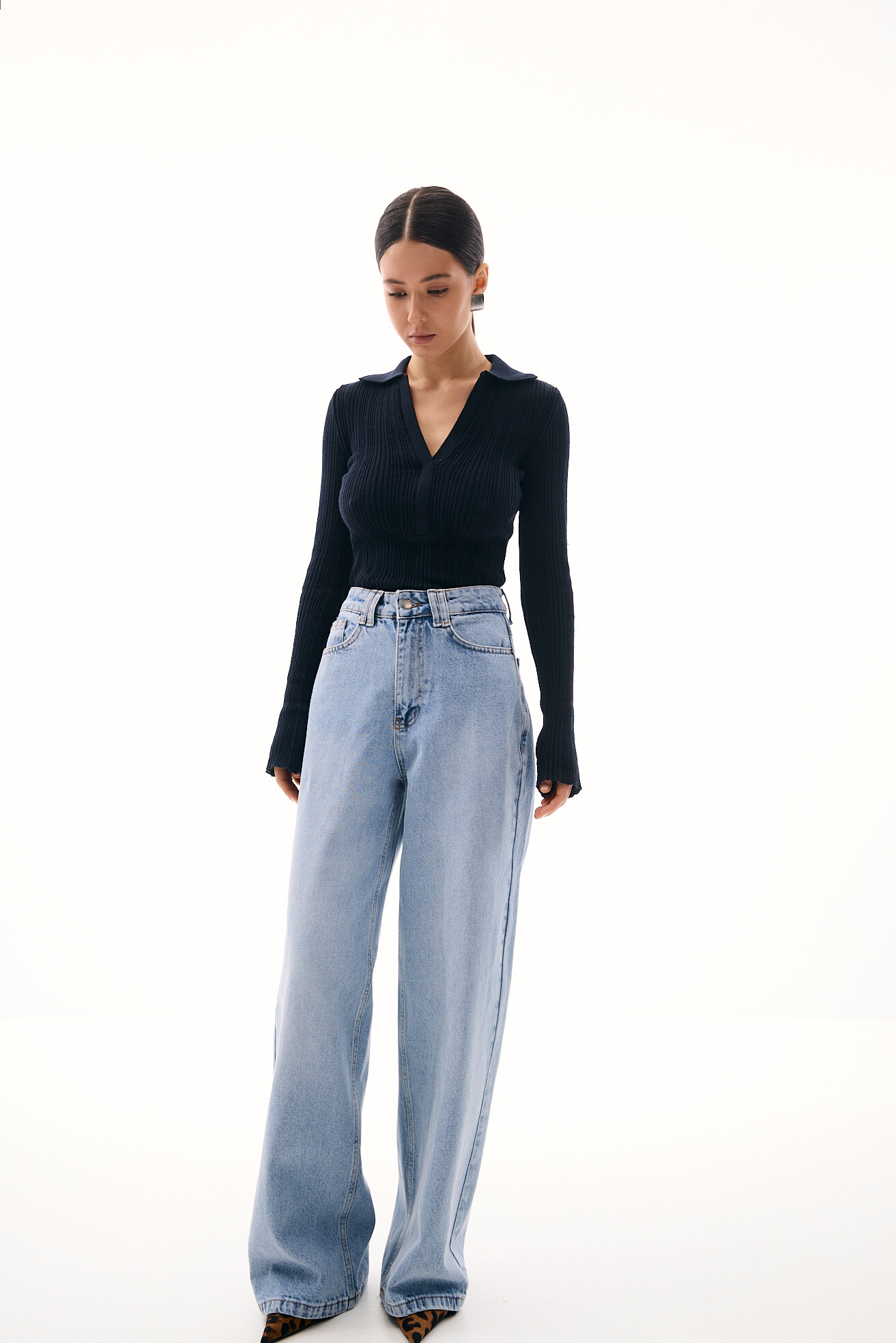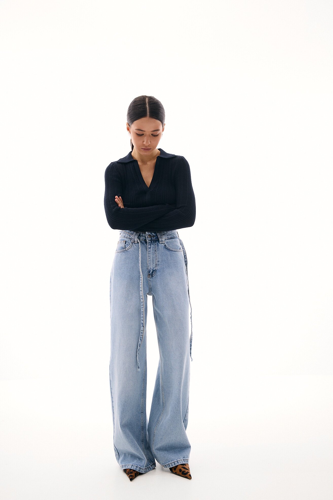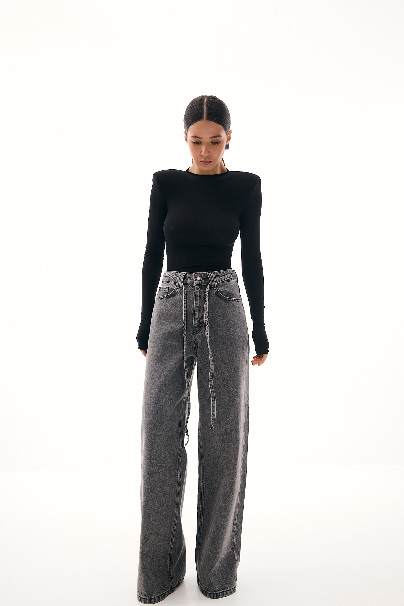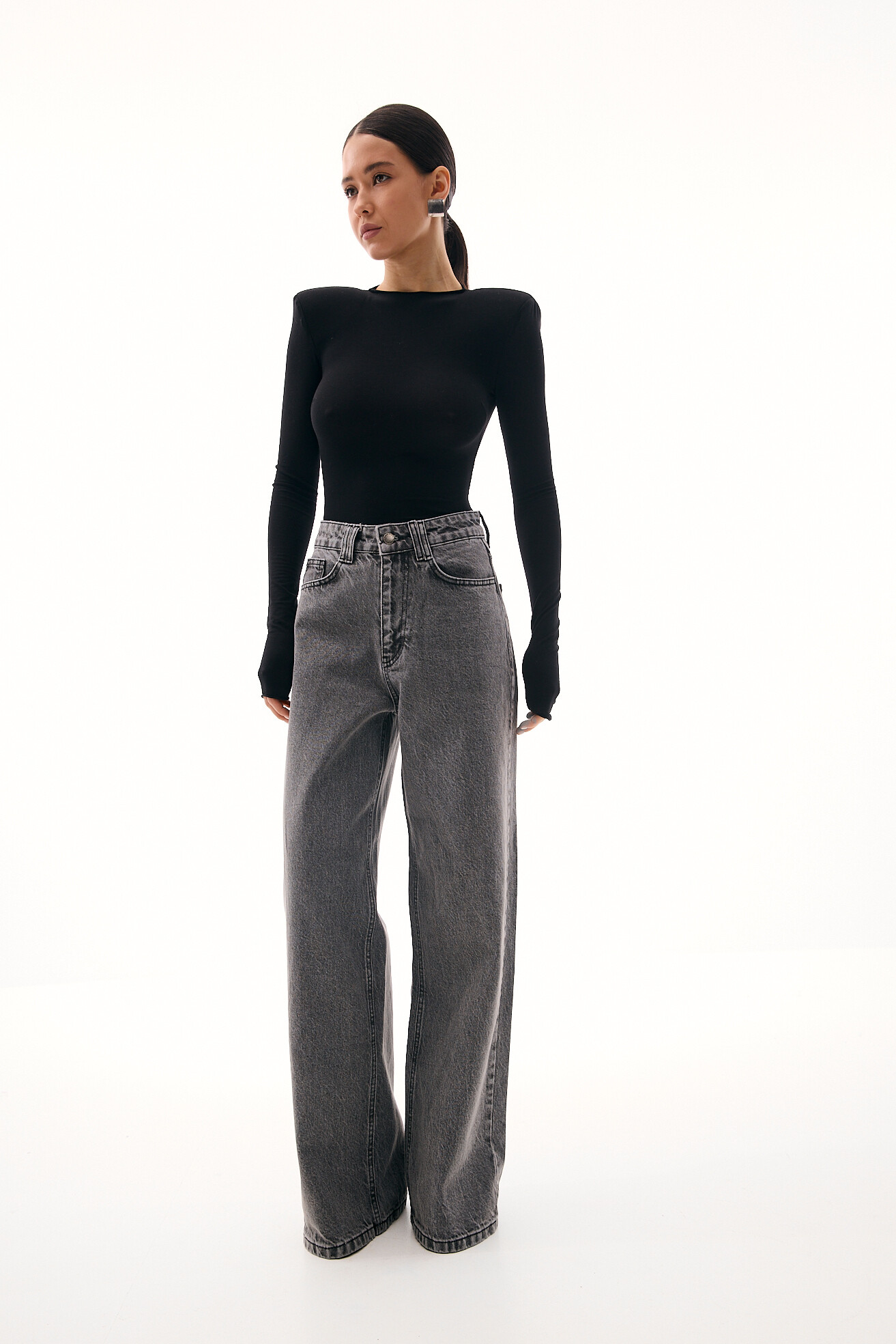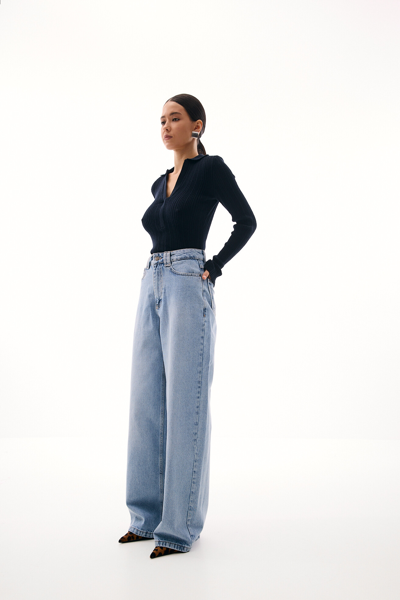 Джинси вільного, розслабленого фасону — комфортна база з виразним характером. Цікавий акцент у вигляді фігурної кокетки підкреслює талію та лінію стегон, роблячи силует більш виразним. Щільний денім добре тримає форму й забезпечує тривалість у носінні. Модель залишається універсальною та зручною, водночас додаючи образу акцентності та сучасної яскравості.