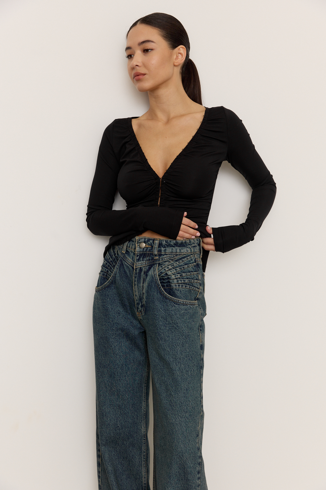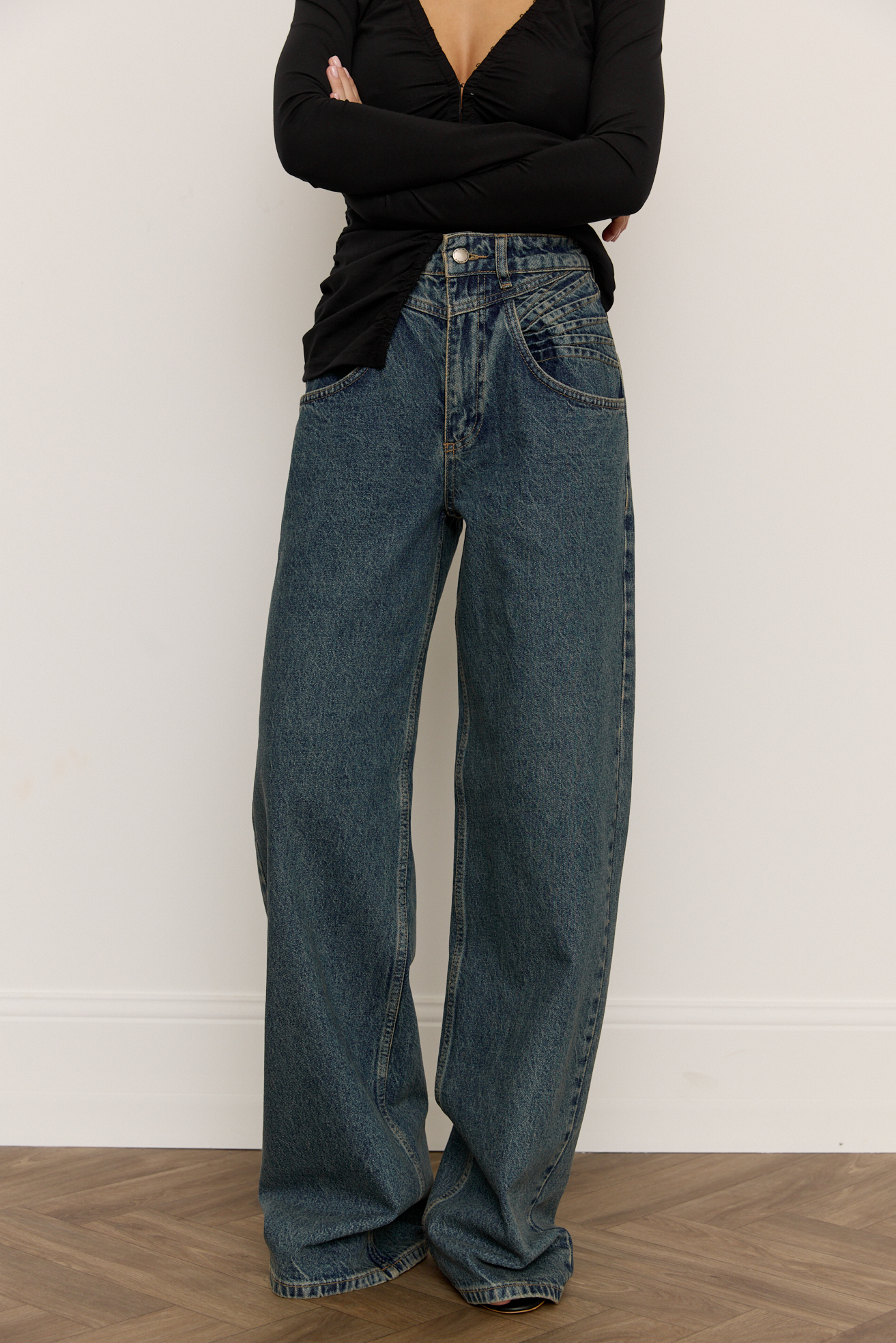 Джинси прямого крою у нестандартному відтінку з легким зеленим підтоном виглядають свіжо та актуально. Фігурні деталі спереду стають головним акцентом моделі, додаючи їй індивідуальності та роблячи образ ефектним навіть без додаткової стилізації. Завдяки сучасному крою джинси легко поєднуються як з базовим верхом, так і з більш яскравими речами. Модель представлена у двох довжинах, що дозволяє підібрати ідеальний варіант для різного зросту.