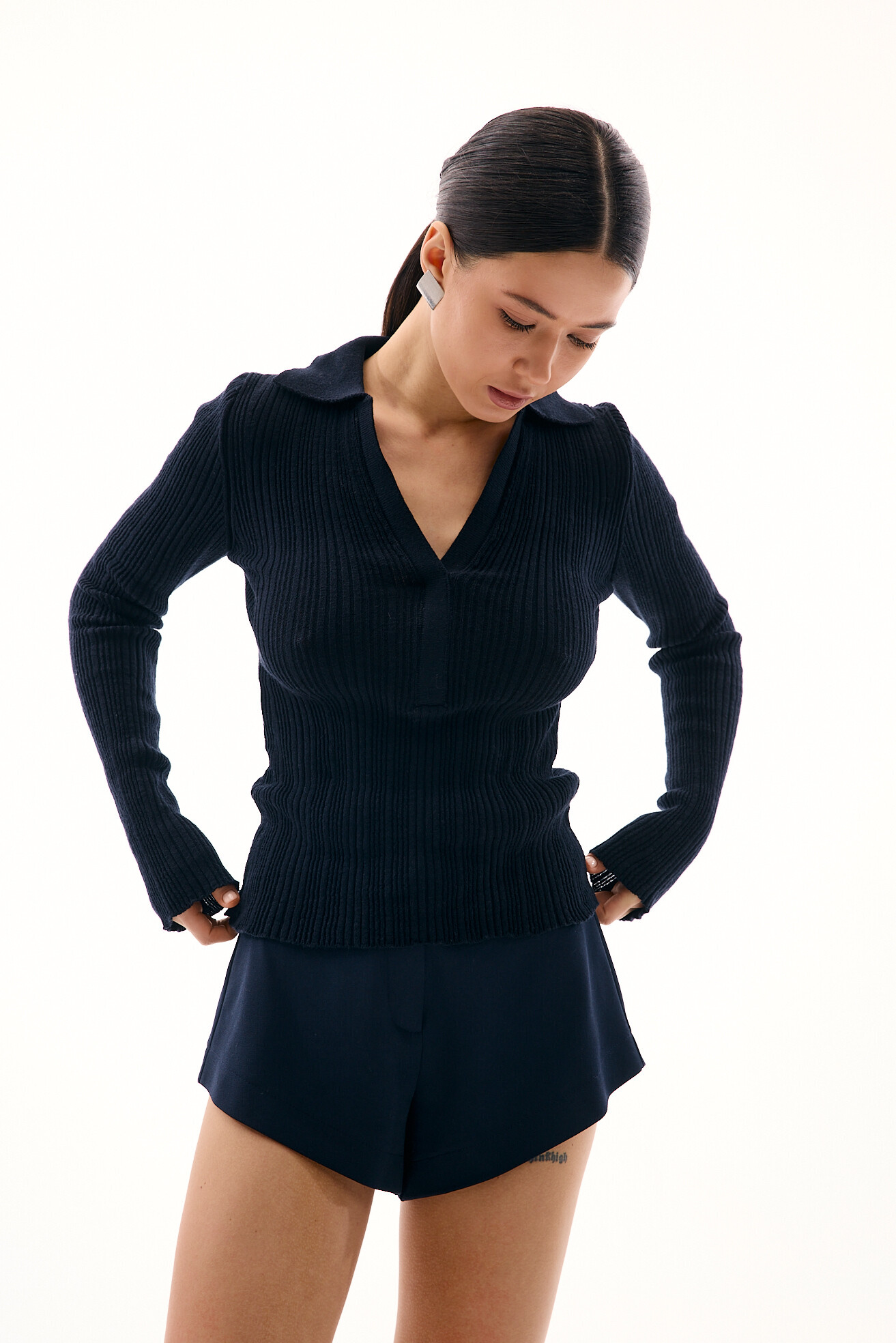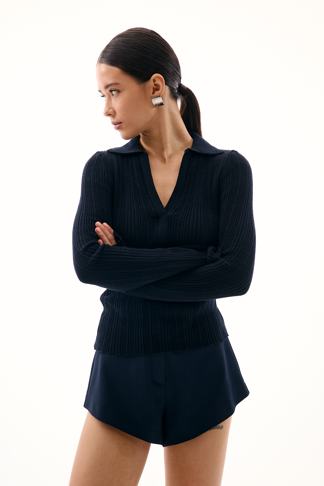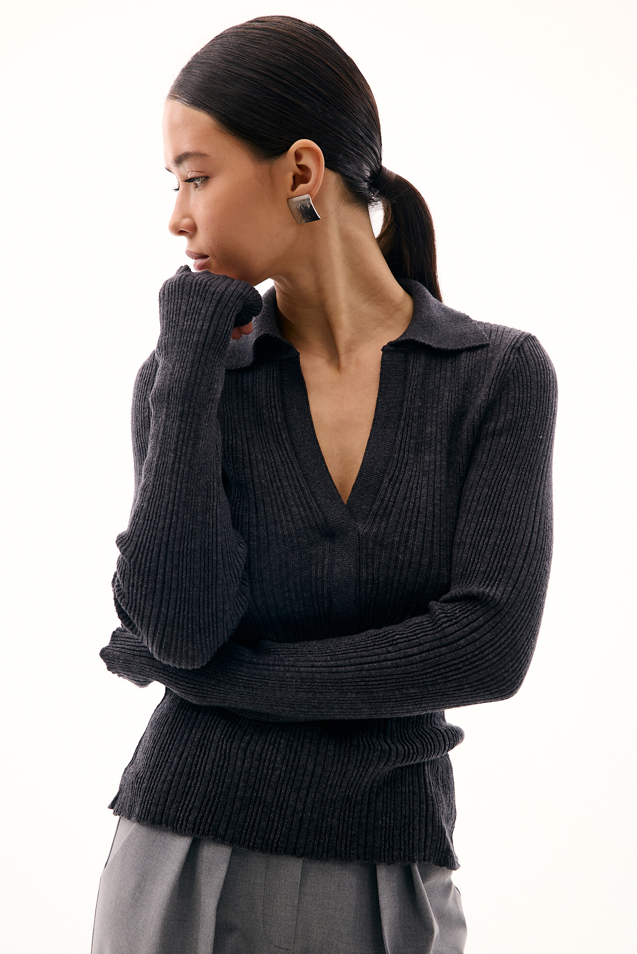 Вʼязаний лонгслів з коміром