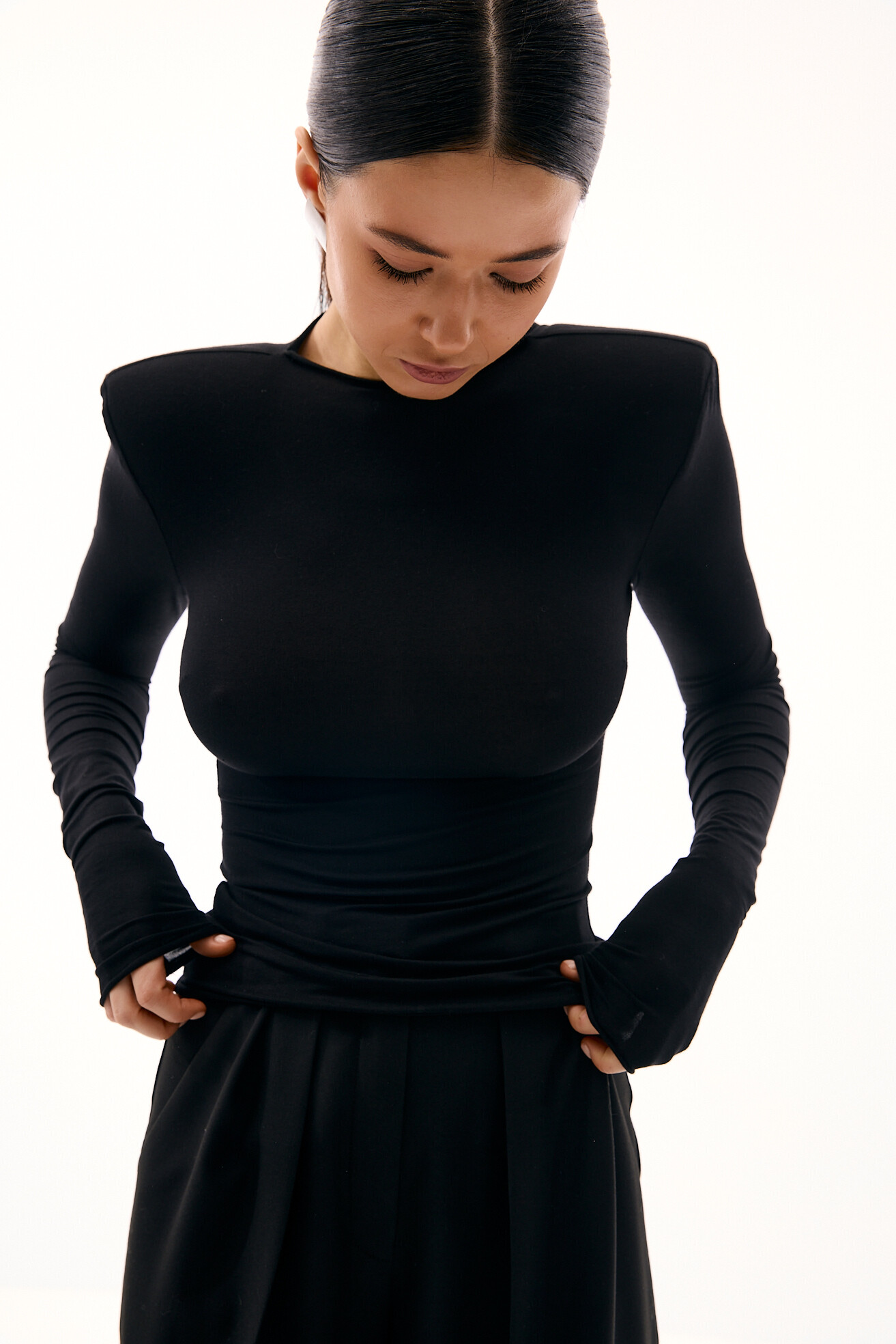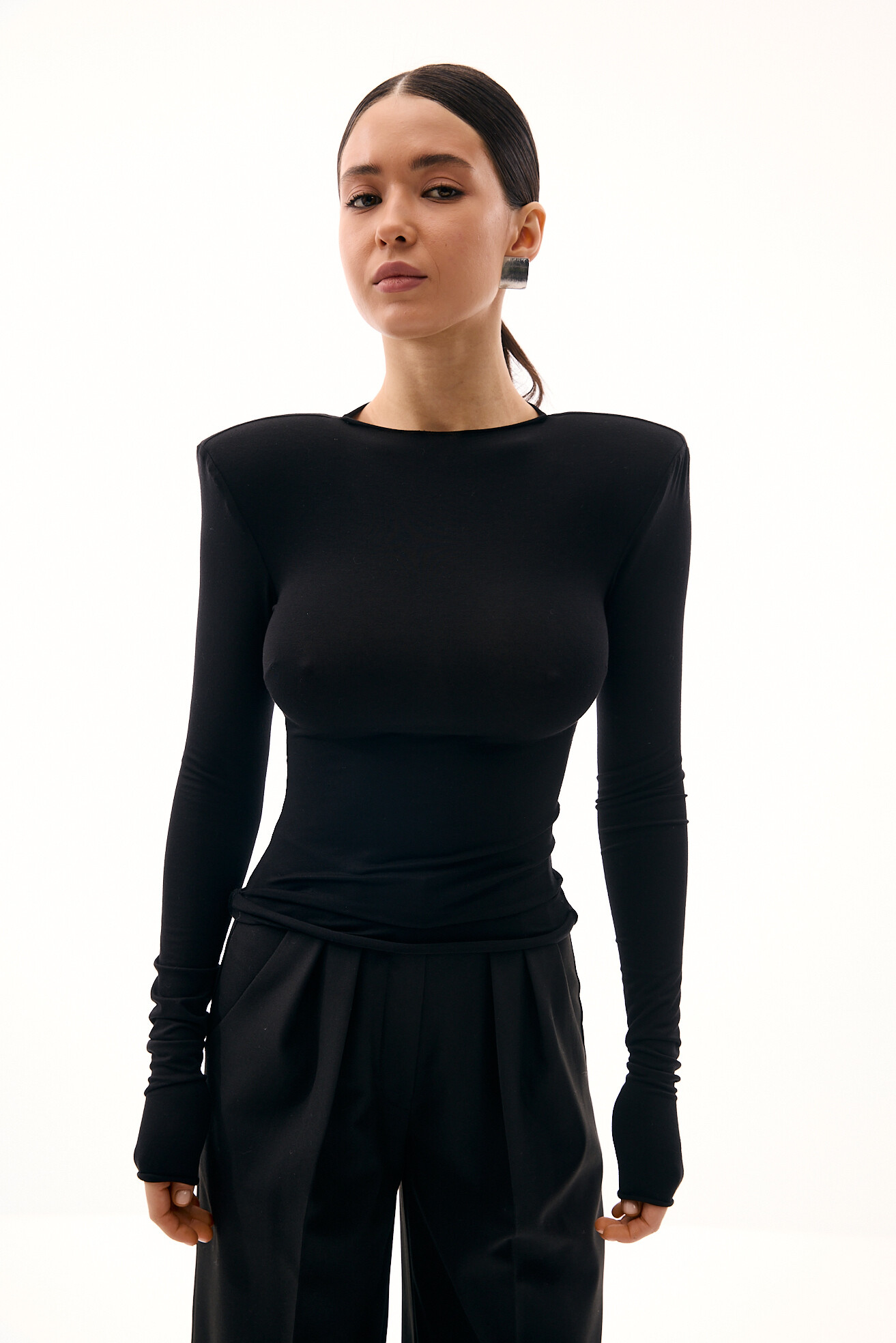 Лонгслів облягаючого силуету з акцентними підплічниками - стильна та актуальна база для щоденних образів. Зручний у носінні, він водночас додає образу виразності завдяки продуманому крою. Приємна до тіла тканина гарно облягає фігуру та підкреслює силует. Універсальна модель, яка легко поєднується з різними низами та виглядає цікаво навіть у простих луках.