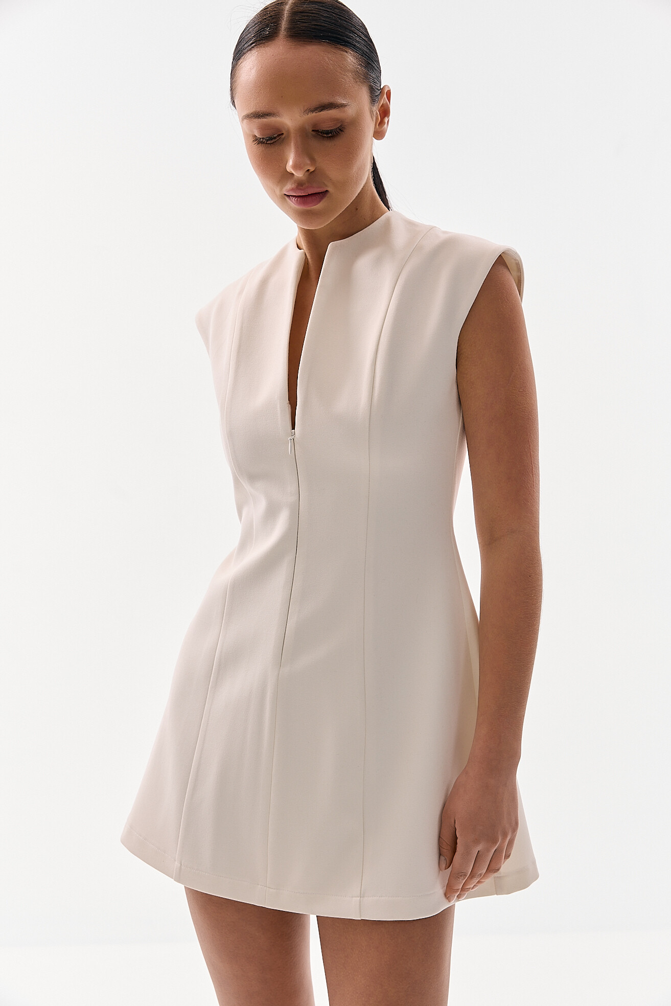Міні плаття молочне з замком