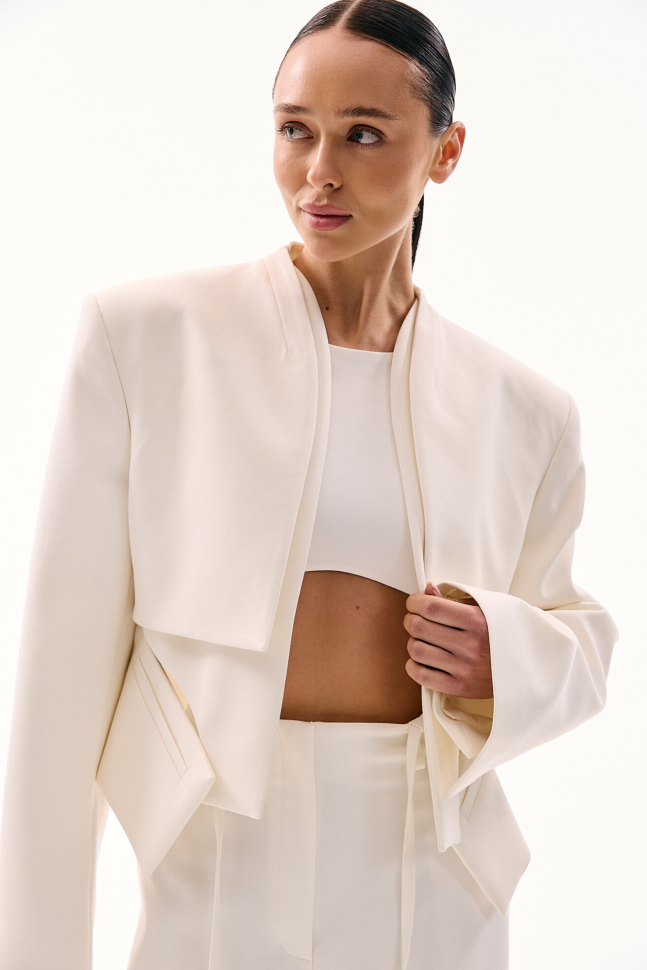 Варіант вкороченого піджака із середнім об’ємом - не надто широкий і не вузький, що робить його універсальним у носінні. Ми додали цікаву відлітну деталь спереду, яка створює акцент і робить модель більш виразною. Такий піджак легко вписується в базові образи й водночас виглядає стильно без складної стилізації. Весняно-літні кольори додають настрою та роблять його актуальним для теплого сезону.