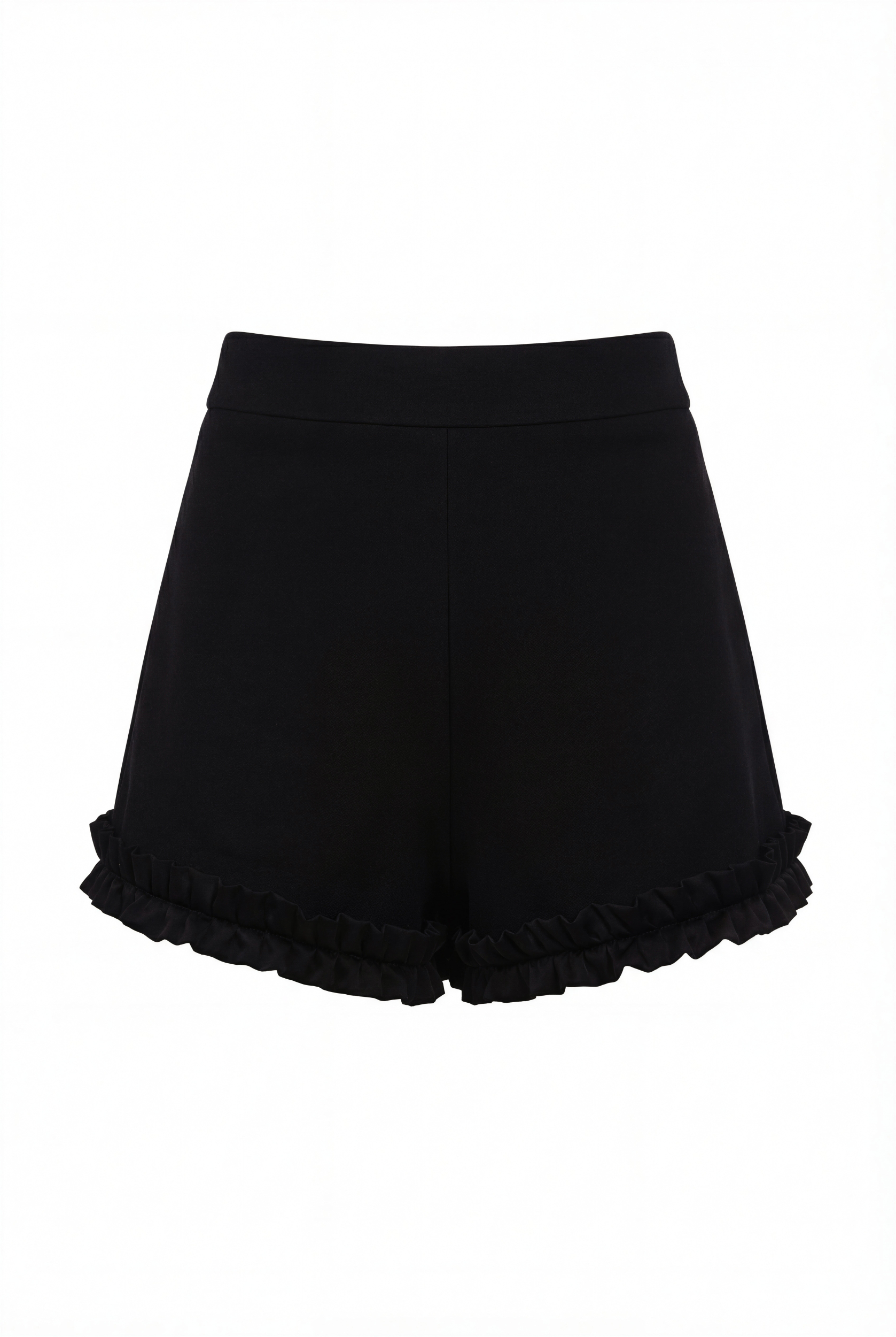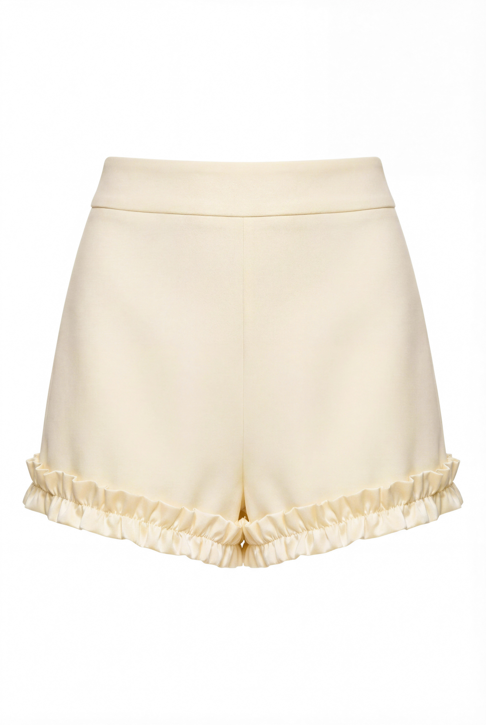 Класичні шорти з виграшною посадкою, які красиво підкреслюють талію та лінію стегон. Акцентна сатинова рюша понизу додає образу святковості й робить модель виразною. Завдяки злегка розширеному крою шорти візуально балансують пропорції та акцентують талію. Стильний і жіночний варіант, який легко стане яскравим елементом образу.