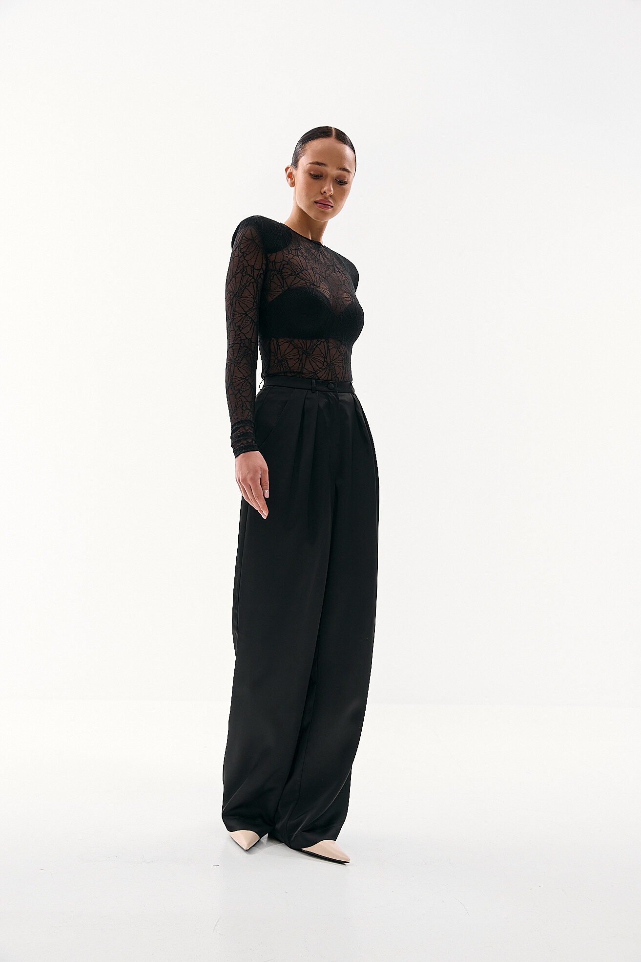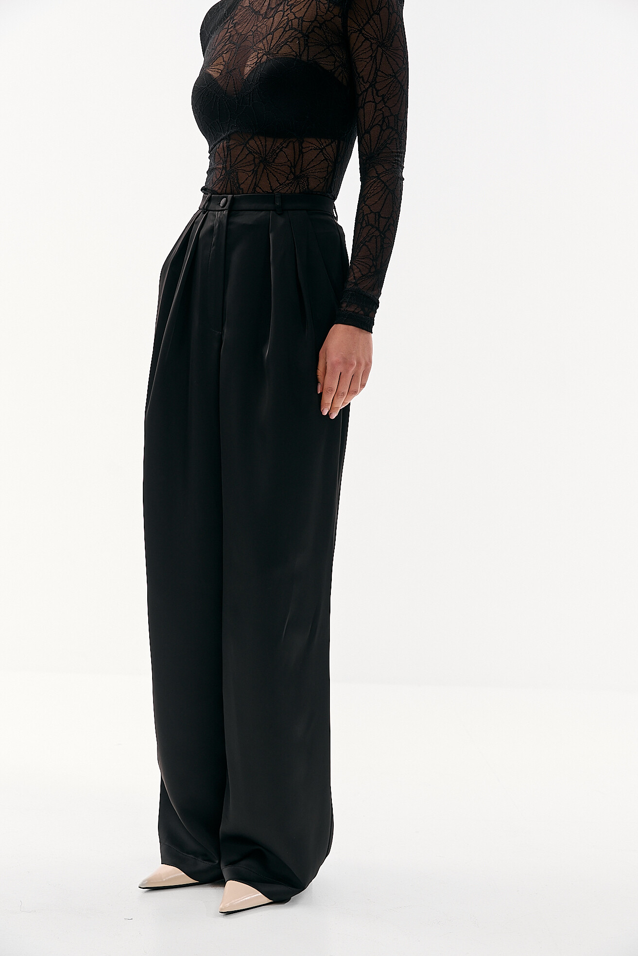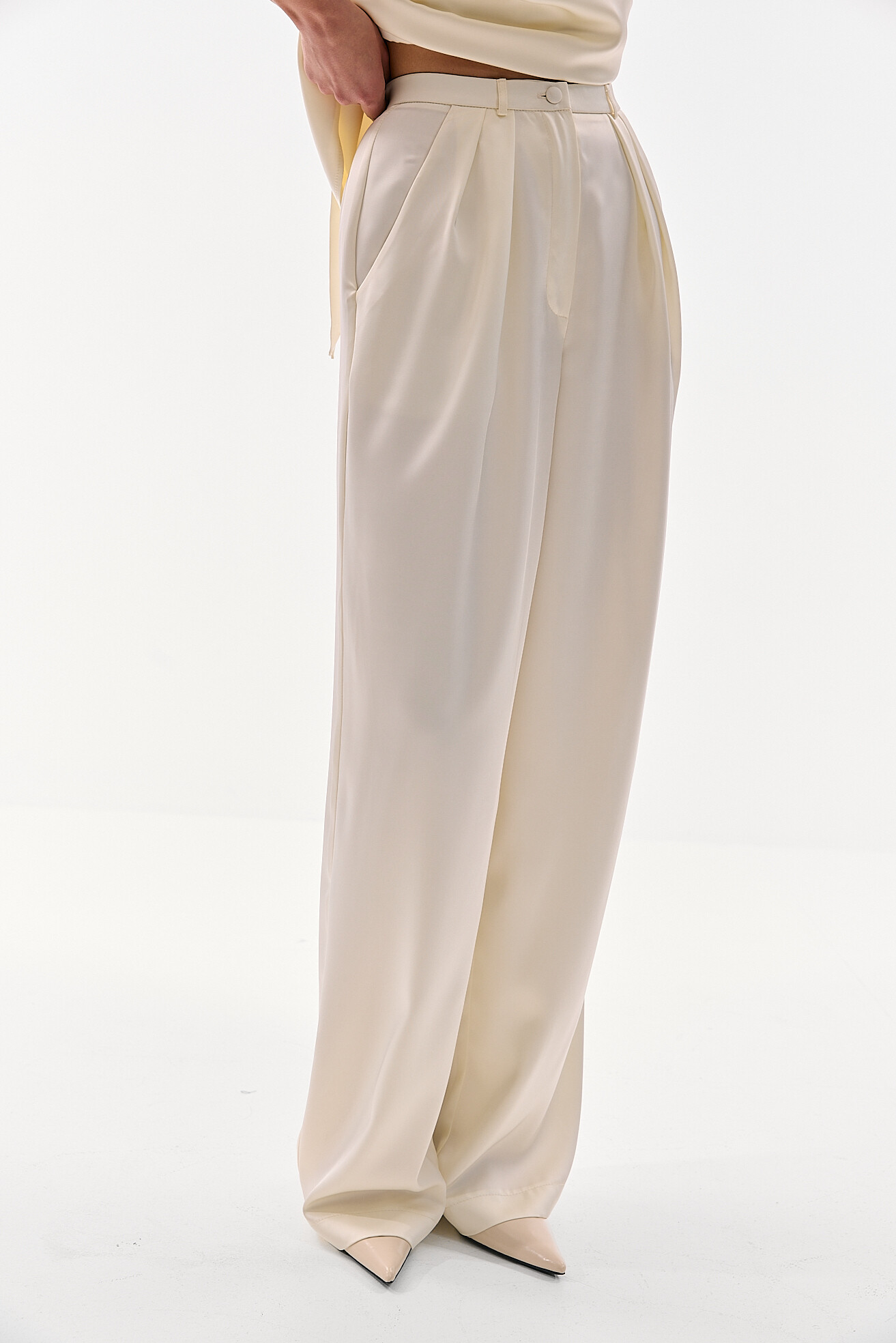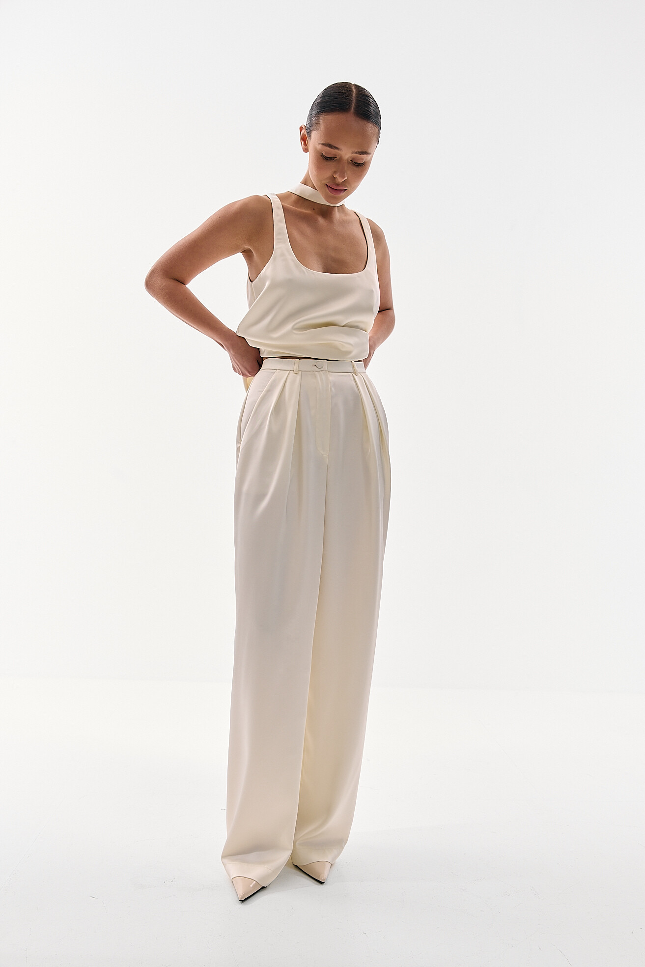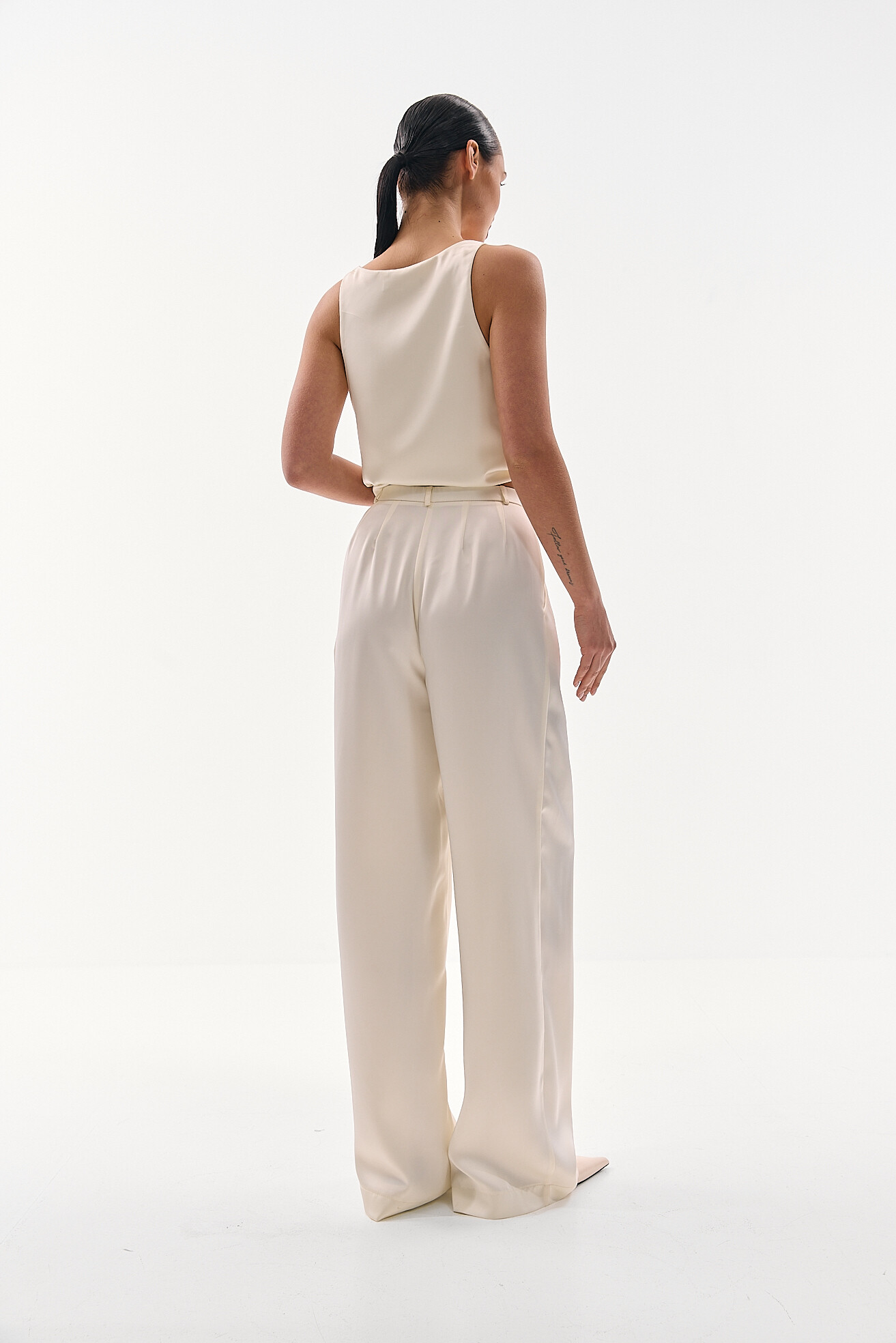 Для прихильниць класичних образів ми розробили модель палаццо у легкій сатиновій тканині. Ми хотіли зберегти відчуття зібраності та елегантності, але адаптувати його до весняно-літнього сезону. Легка тканина забезпечує комфорт у теплу погоду, а делікатний сатиновий блиск додає виробу вишуканості без зайвої акцентності. Це варіант, який виглядає стильно та доречно у будь-якій ситуації.