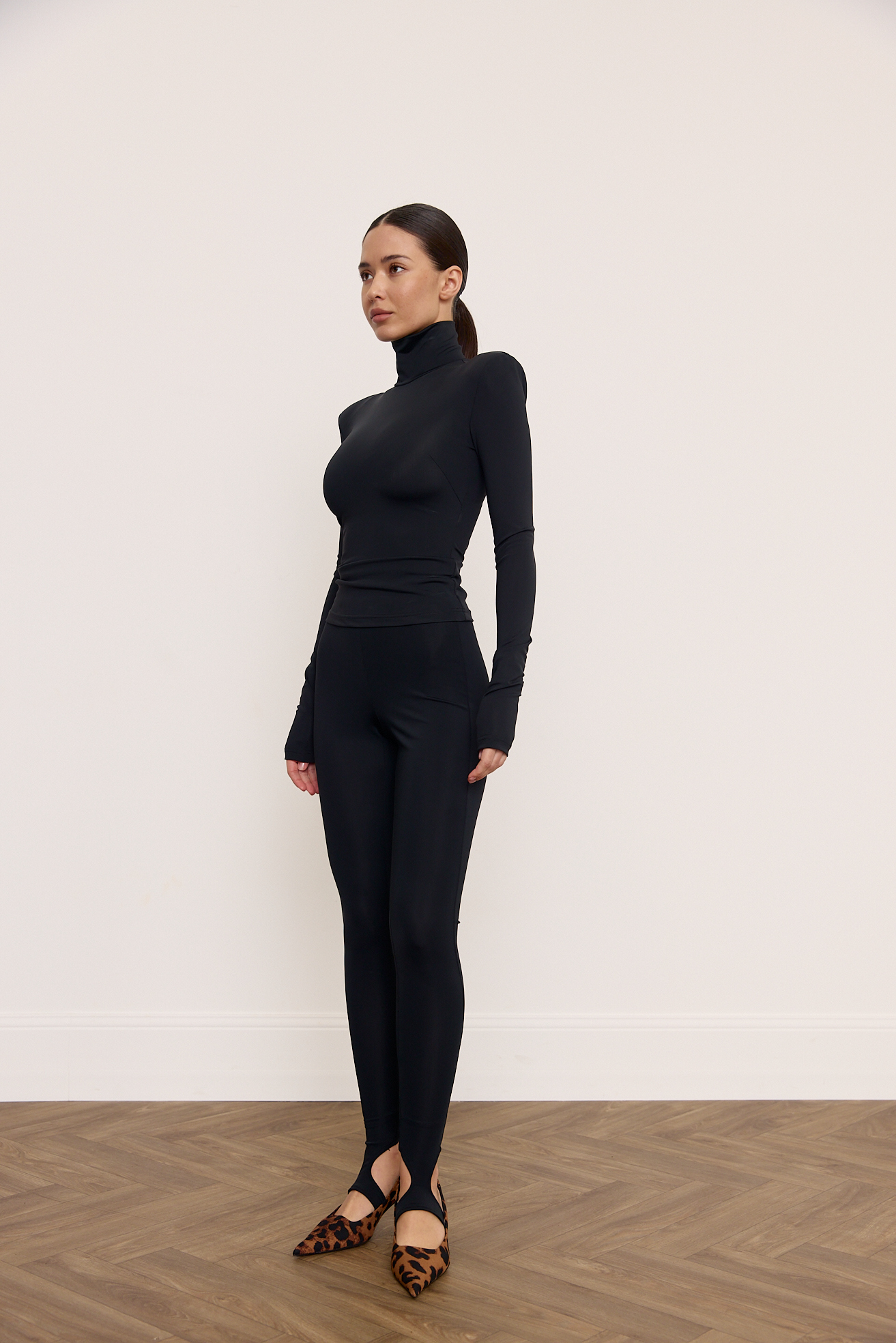 Лосини з тканини біфлекс ідеально підкреслюють фігуру, забезпечуючи комфорт і свободу рухів. Еластичний матеріал приємний до тіла та має гарний утягувальний ефект. Цікавим акцентом виступають трендові штрипки незвичної форми, які додають образу сучасності та оригінальності. Стильна й універсальна модель, що чудово поєднує функціональність і моду.