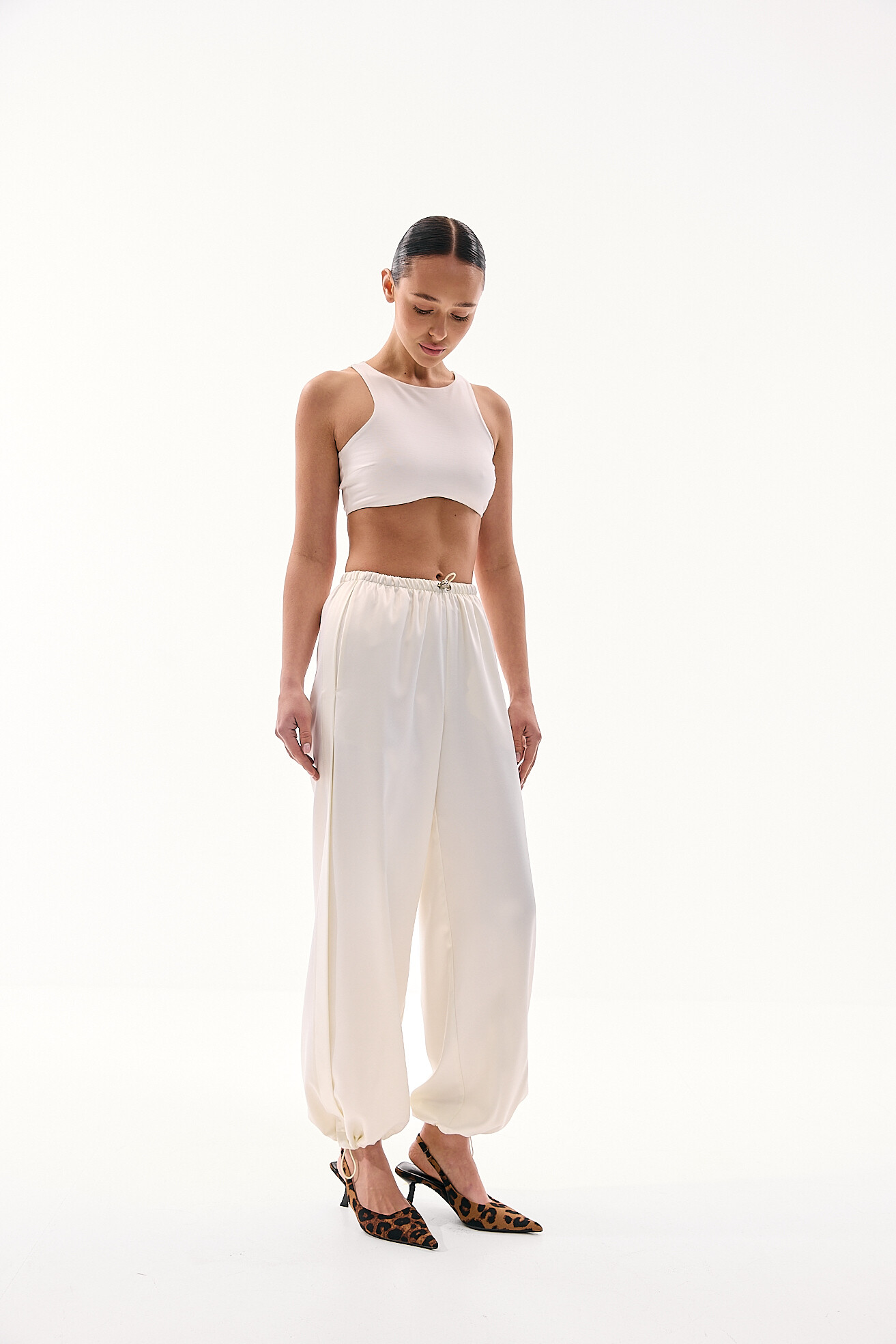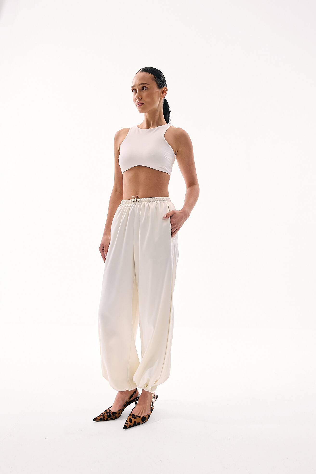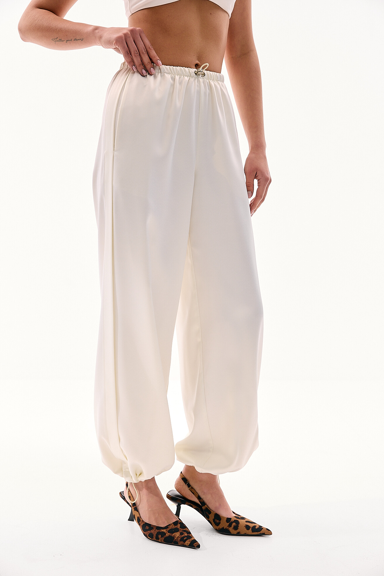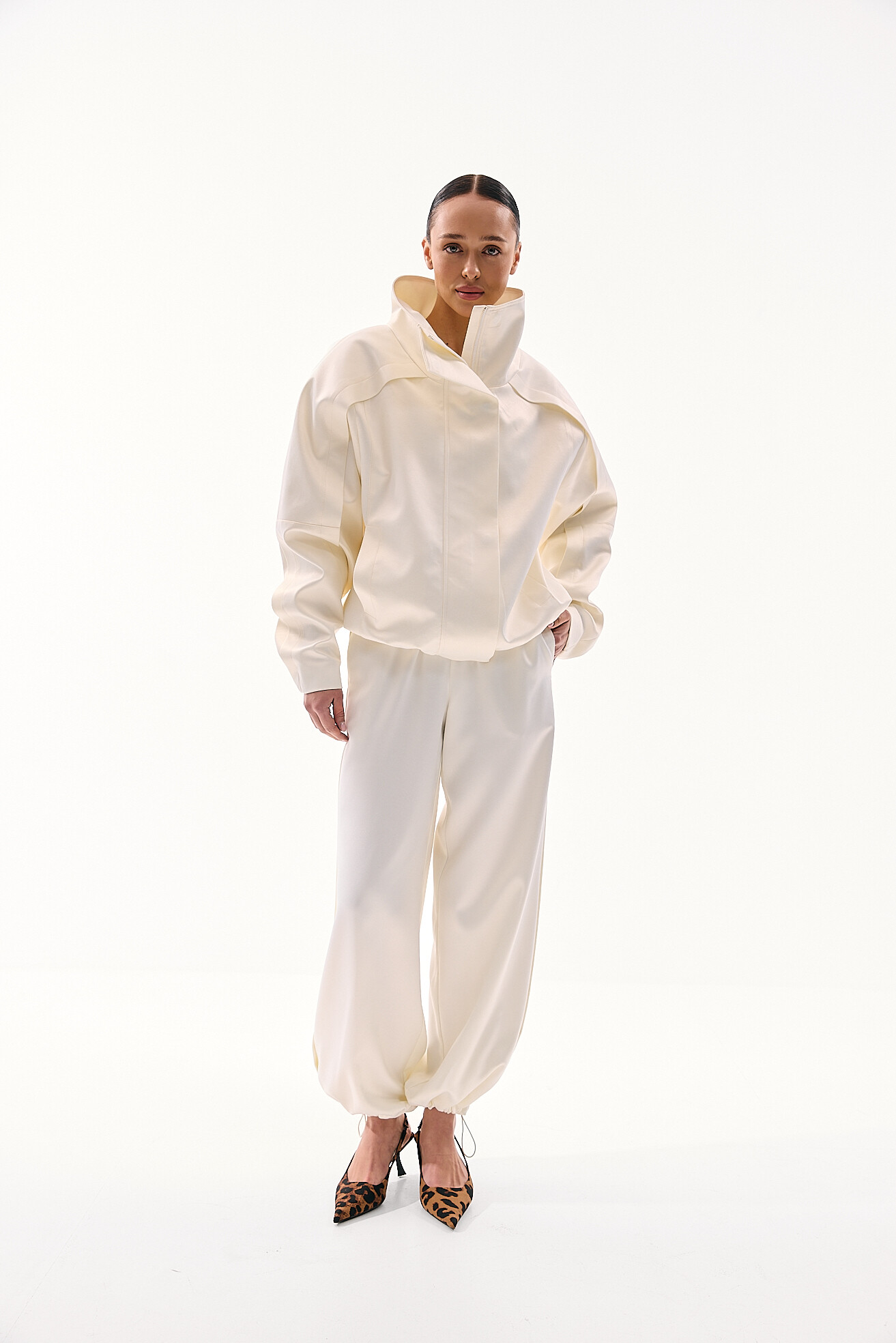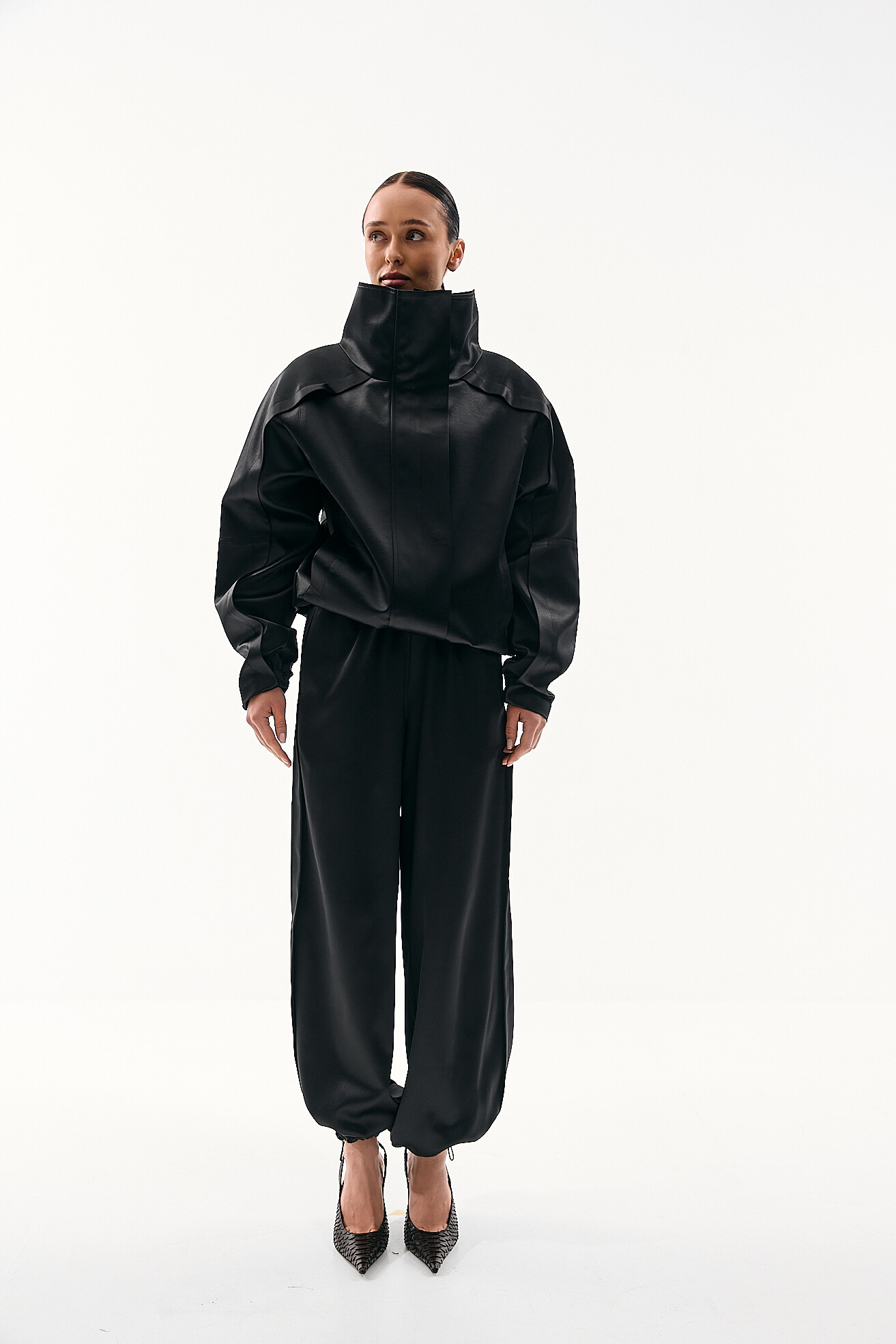 Актуальне рішення на цю весну — штани-джогери в сатиновій фактурі. Легка, вільна модель ідеально підходить для весняно-літнього періоду та комфортна у спеку. Зберігаючи звичну базову форму, штани доповнені цікавими деталями у вигляді лампасів по боках. Стильний і зручний варіант для щоденних образів.